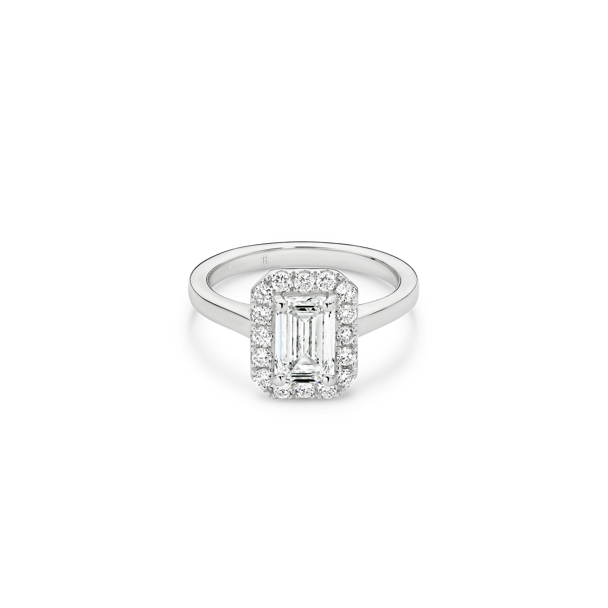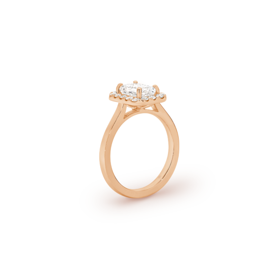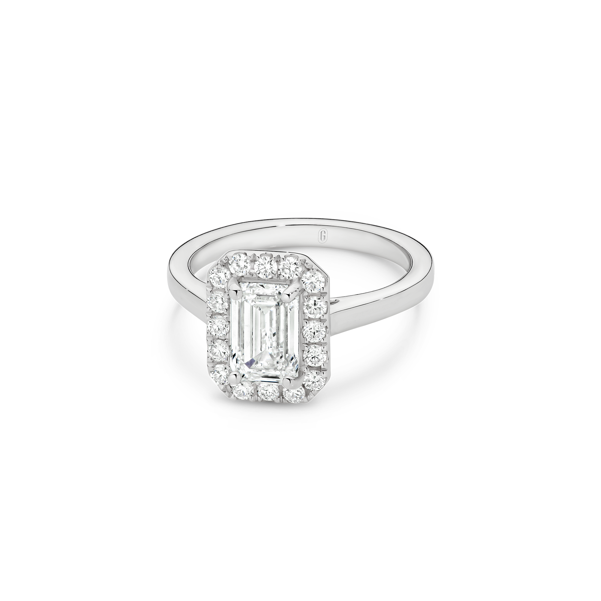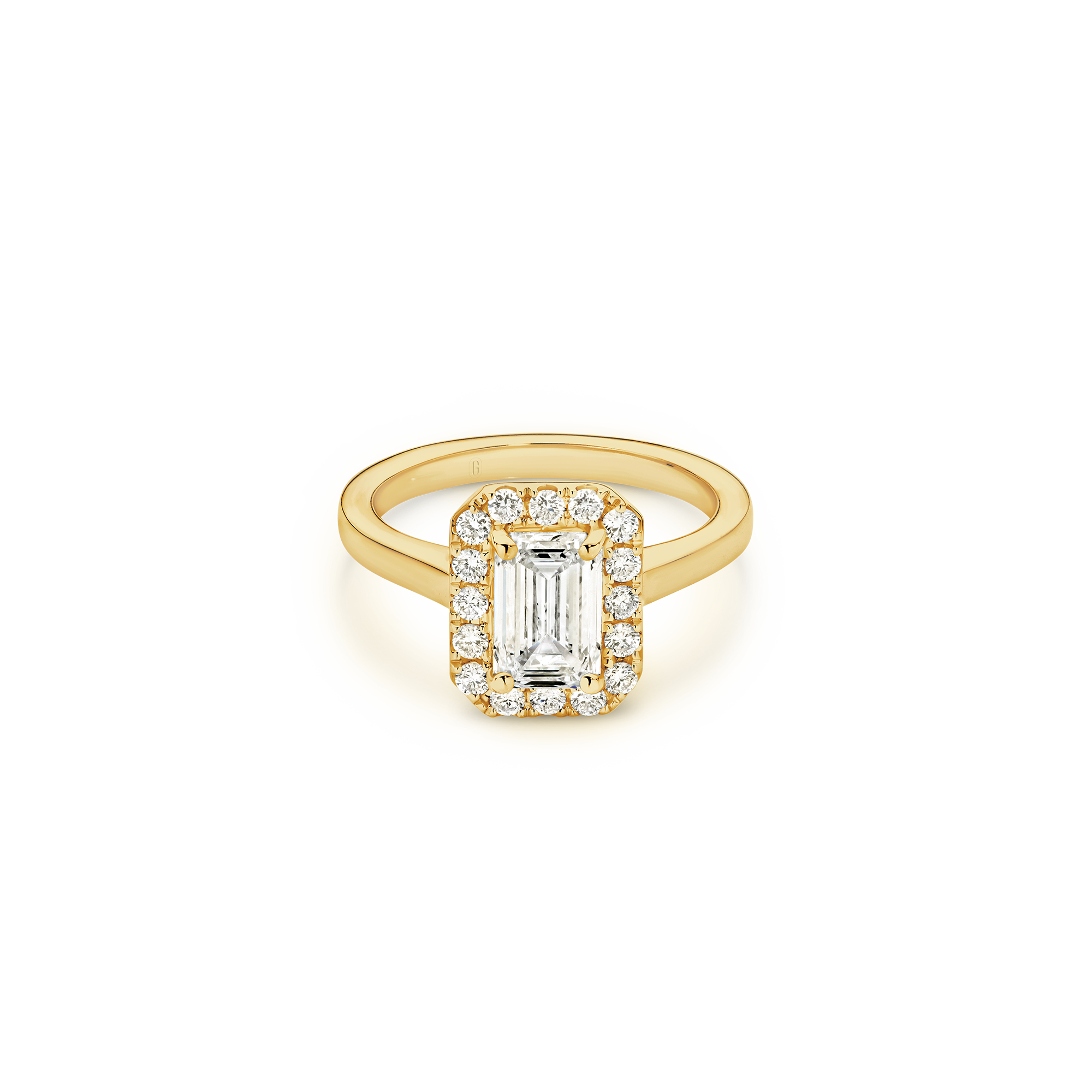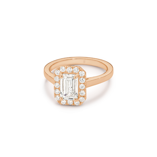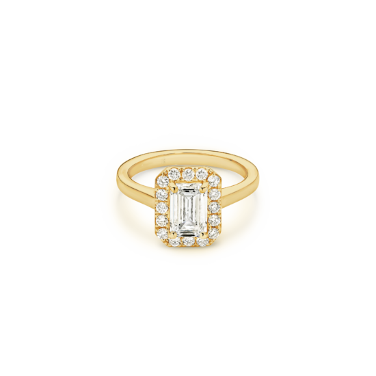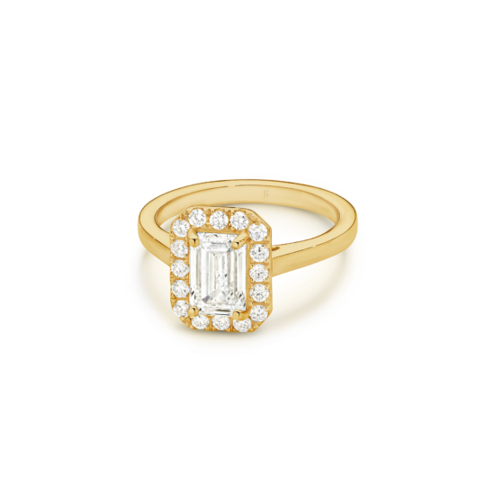 This exquisite ring features an emerald-cut diamond, cradled by a captivating halo, with a deliberate absence of side diamonds— bringing attention to the purity of the emerald-cut diamond, emphasizing its unique character. We’re passionate about creating jewellery that tells a story, with this emerald cut beauty, crowned by a halo, you’ll feel the dedication and artistry that define Garen Jewellery
