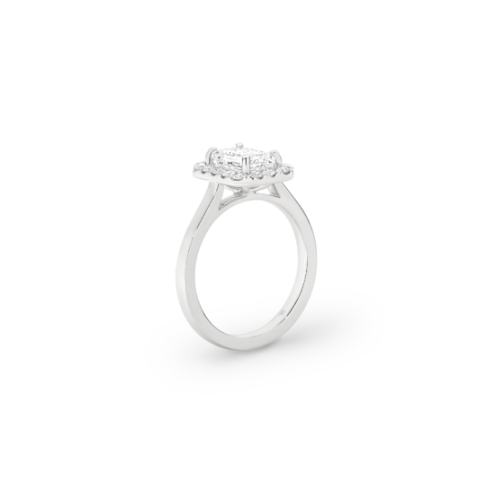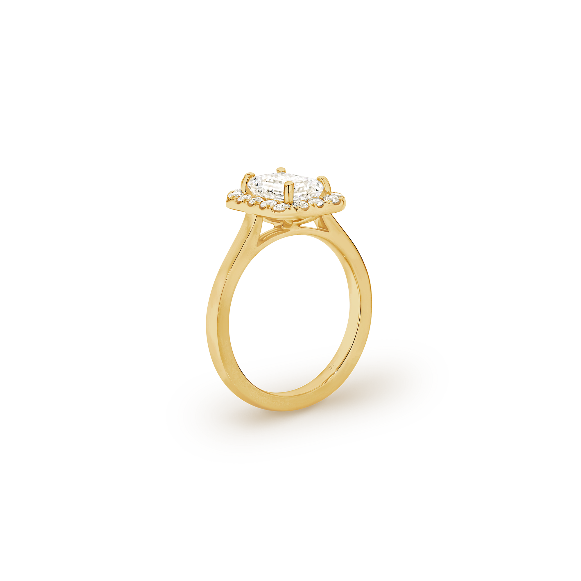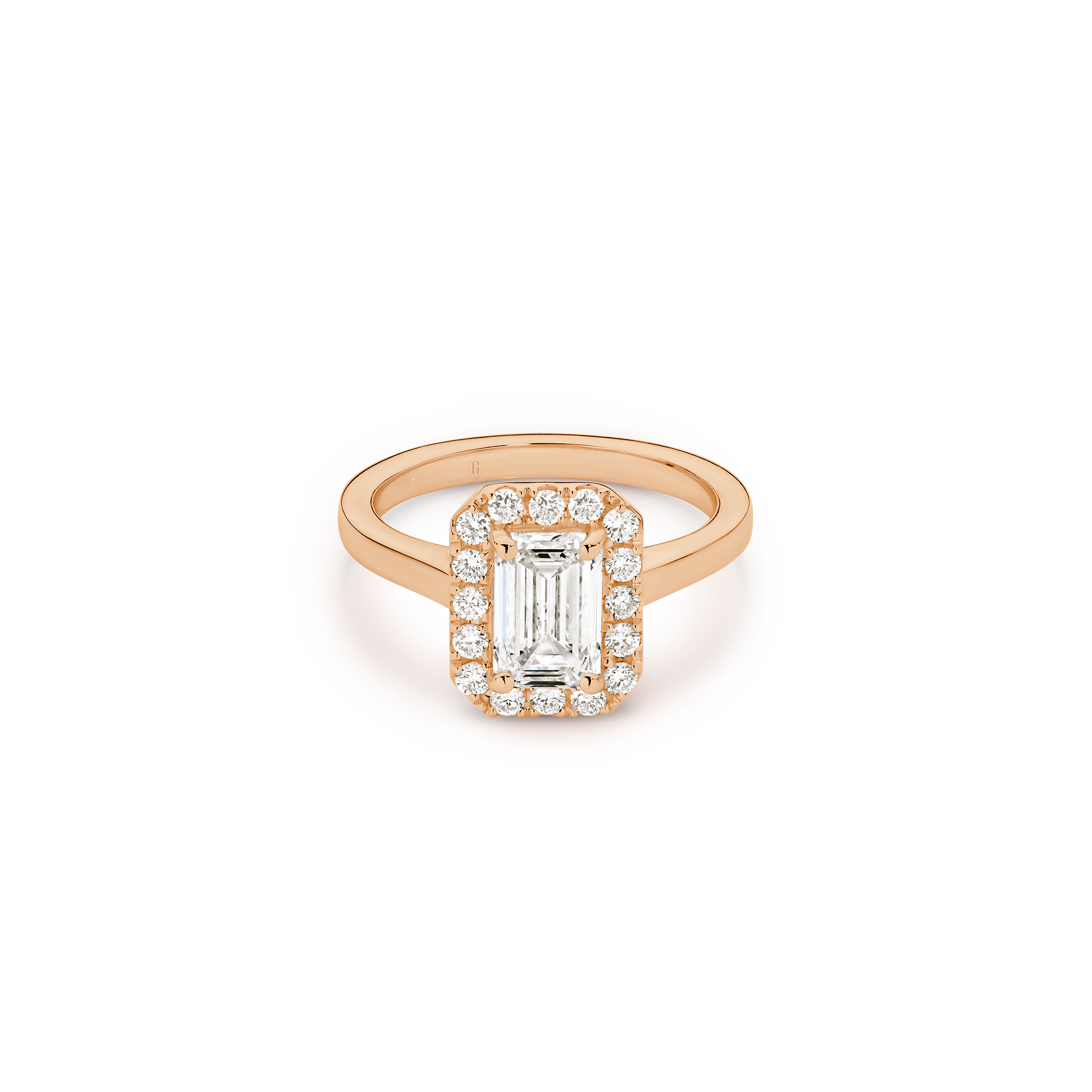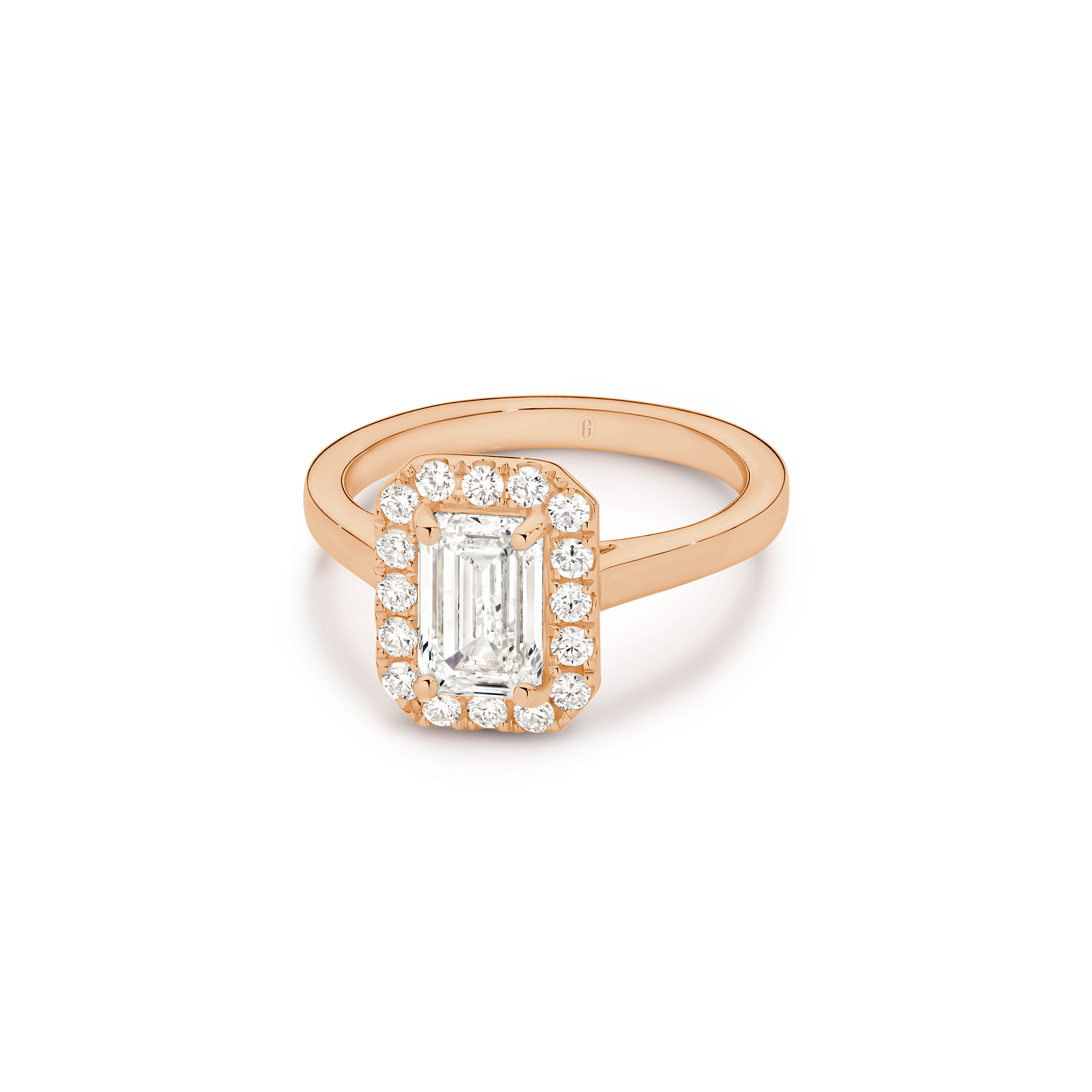 This exquisite ring features an emerald-cut diamond, cradled by a captivating halo, with a deliberate absence of side diamonds— bringing attention to the purity of the emerald-cut diamond, emphasizing its unique character. We’re passionate about creating jewellery that tells a story, with this emerald cut beauty, crowned by a halo, you’ll feel the dedication and artistry that define Garen Jewellery