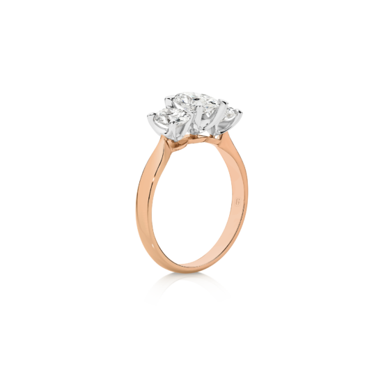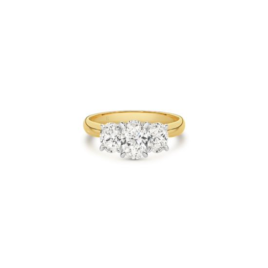 Celebrate your love with this striking oval cut trilogy ring, where three perfectly matched oval diamonds come together in harmony. Each diamond is carefully selected to offer maximum brilliance, creating a stunning visual effect that exudes elegance and sophistication. The trilogy design represents the past, present, and future of your journey together, making this ring a meaningful symbol of your everlasting love.