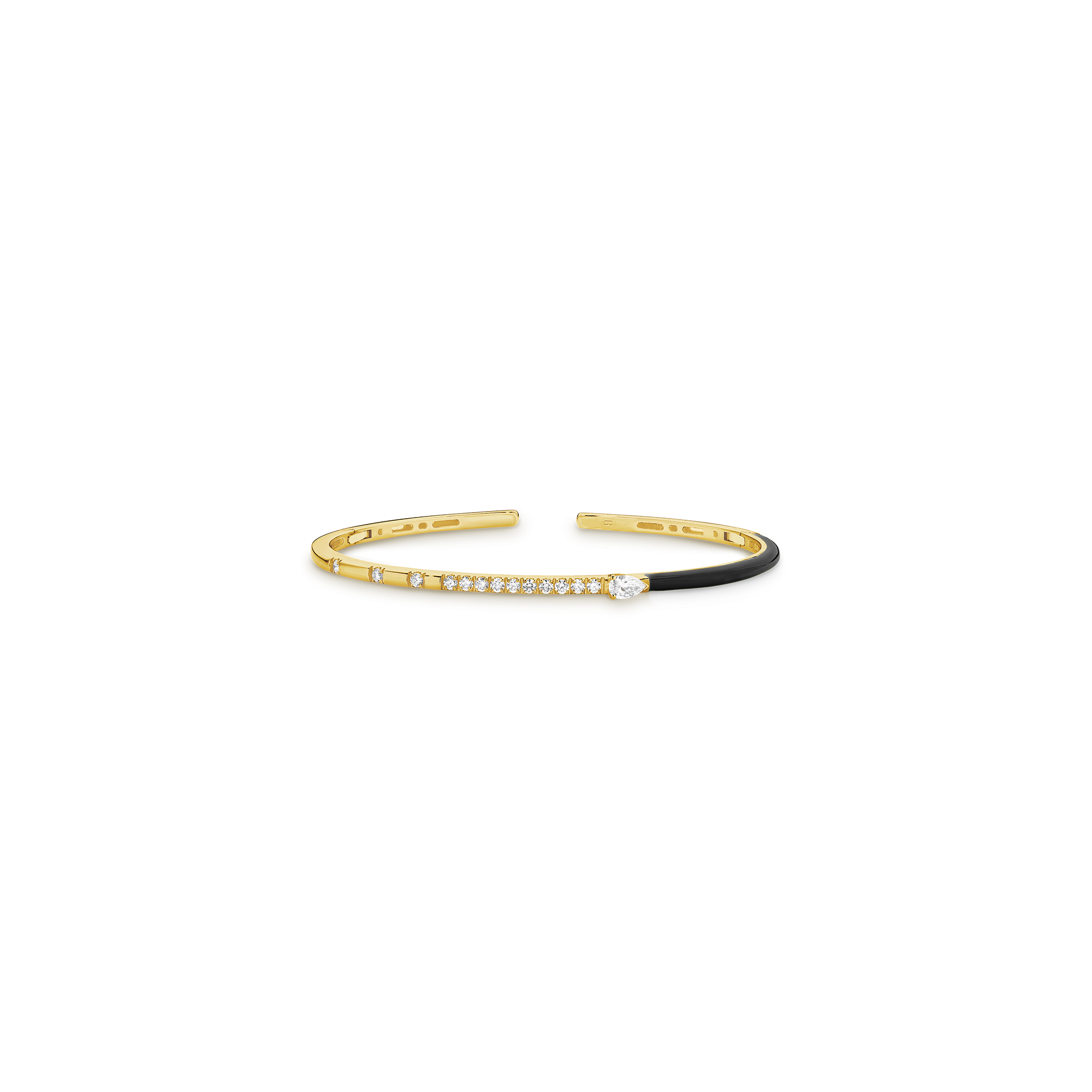 Indulge in pure opulence with this innovative black enamel bangle – a sophisticated twist on a classic. Elevate your every day with a combo of velvety black enamel and 18k white gold – set off by the sparkle of diamonds. The mechanism that allows the bangle to snap on effortlessly without a clasp is the ultimate in luxury! To complete the look layer with the other mesmerizing colours in the range, or a classic tennis bracelet!