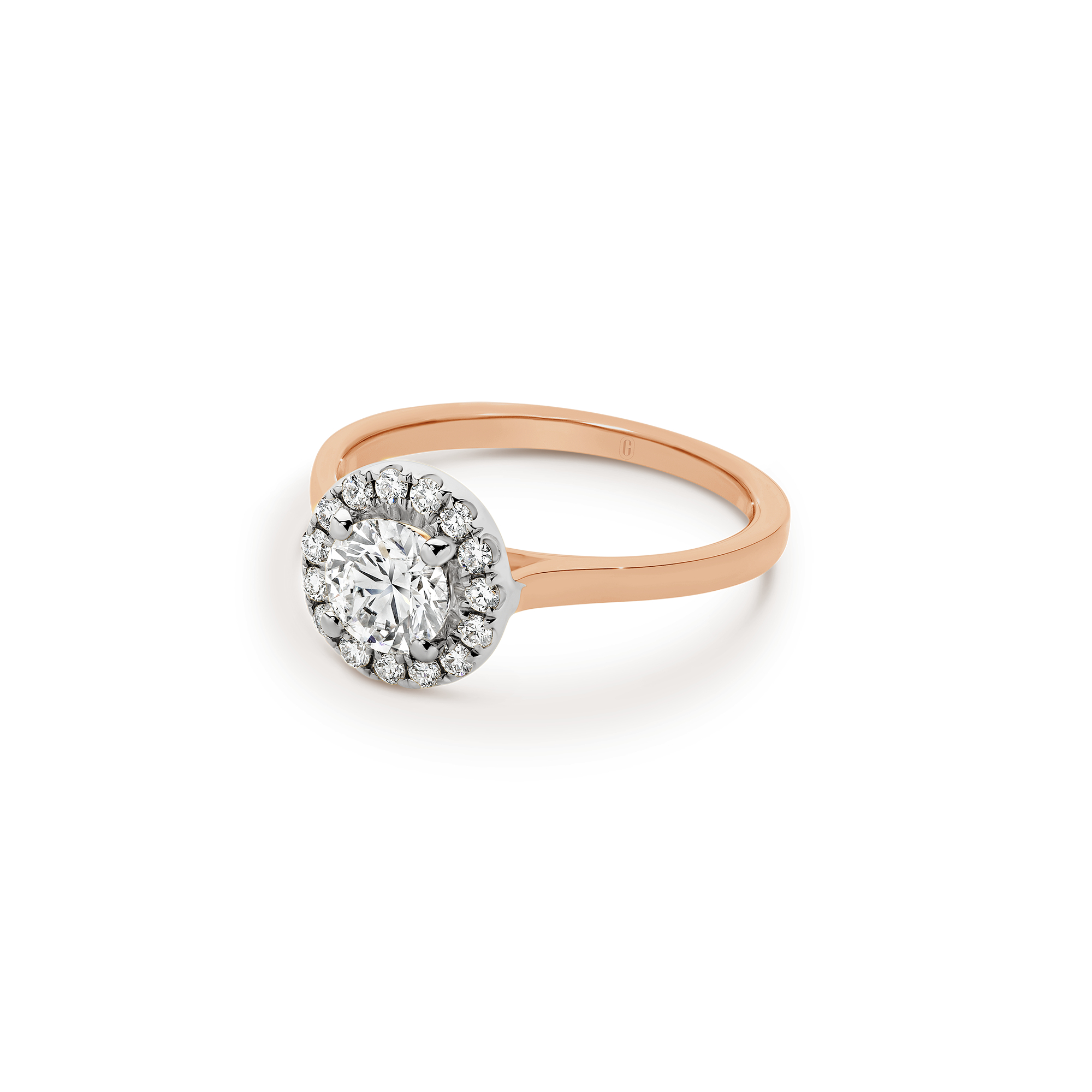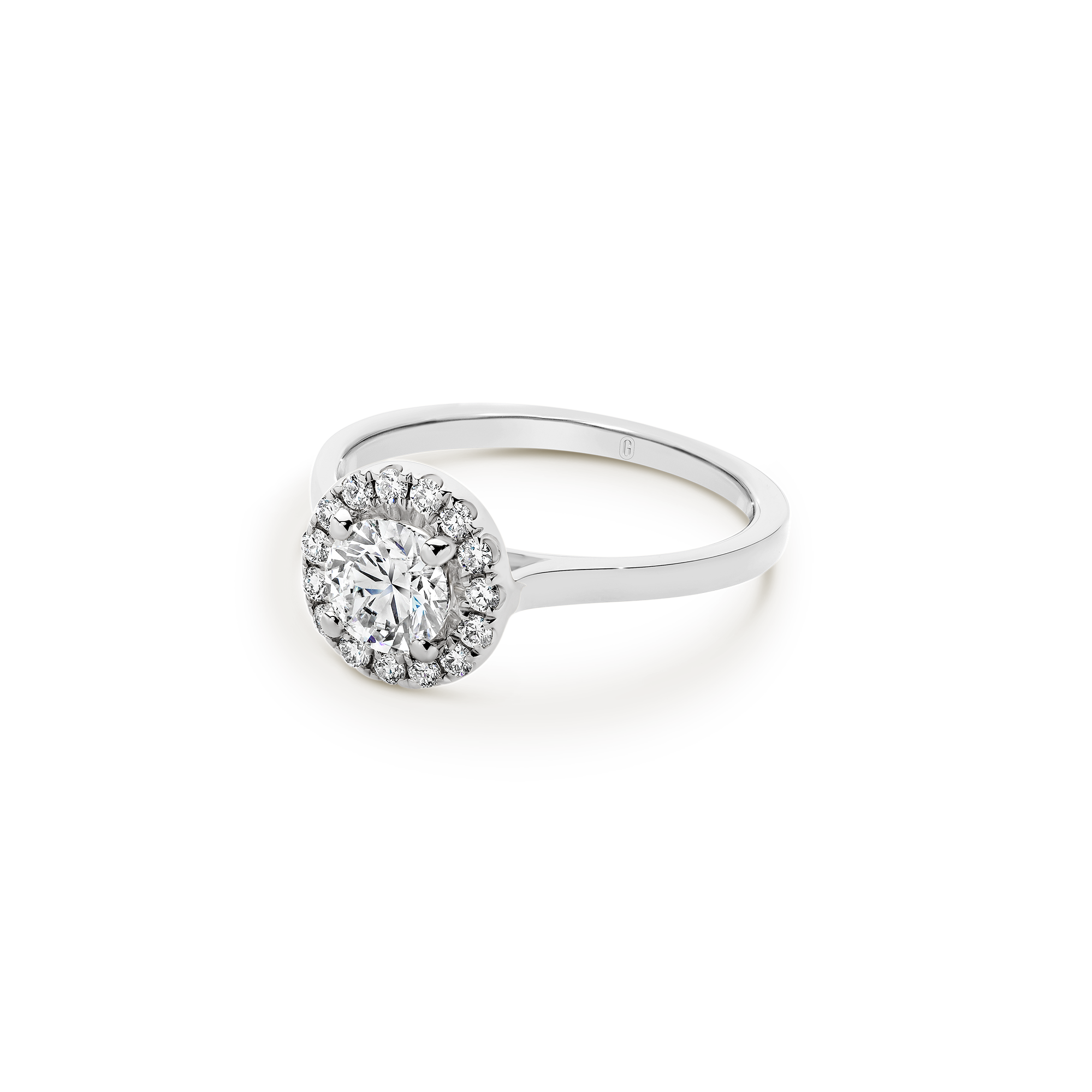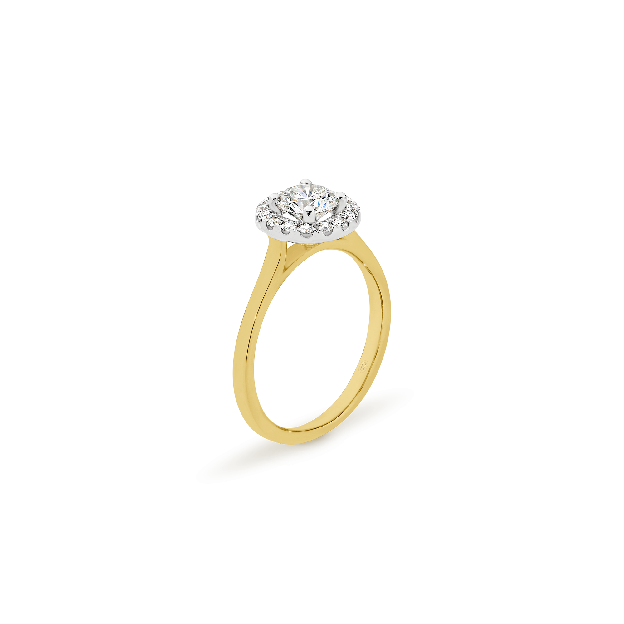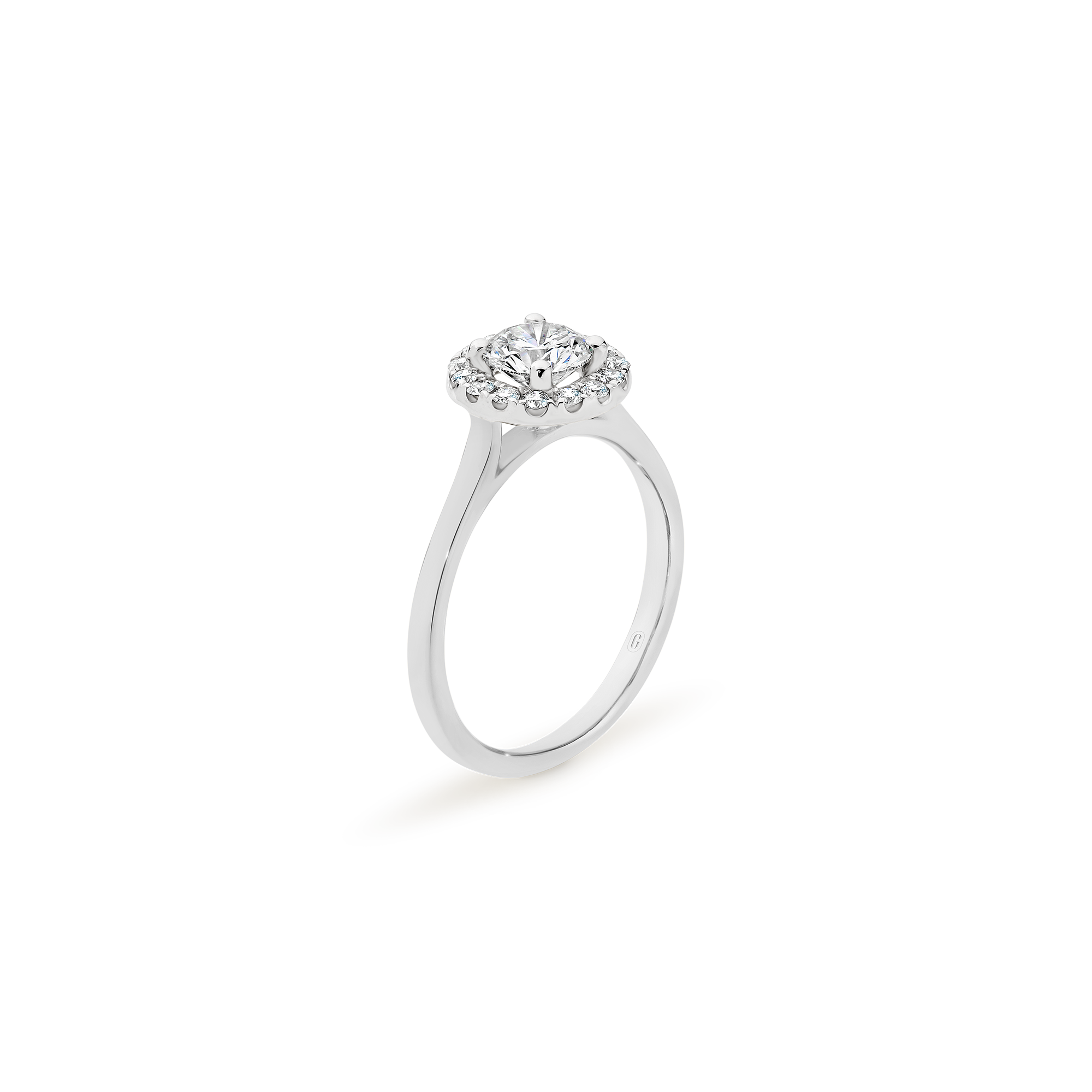 Halos are not just for angels! The round brilliant cut diamond in this magnificent engagement ring is ensconced with a swirl of claw set diamonds. A forever classic, the diamond halo gives the illusion of a larger centre stone and the flurry of sparkle that comes from the light dancing off multiple diamond facets is a win!