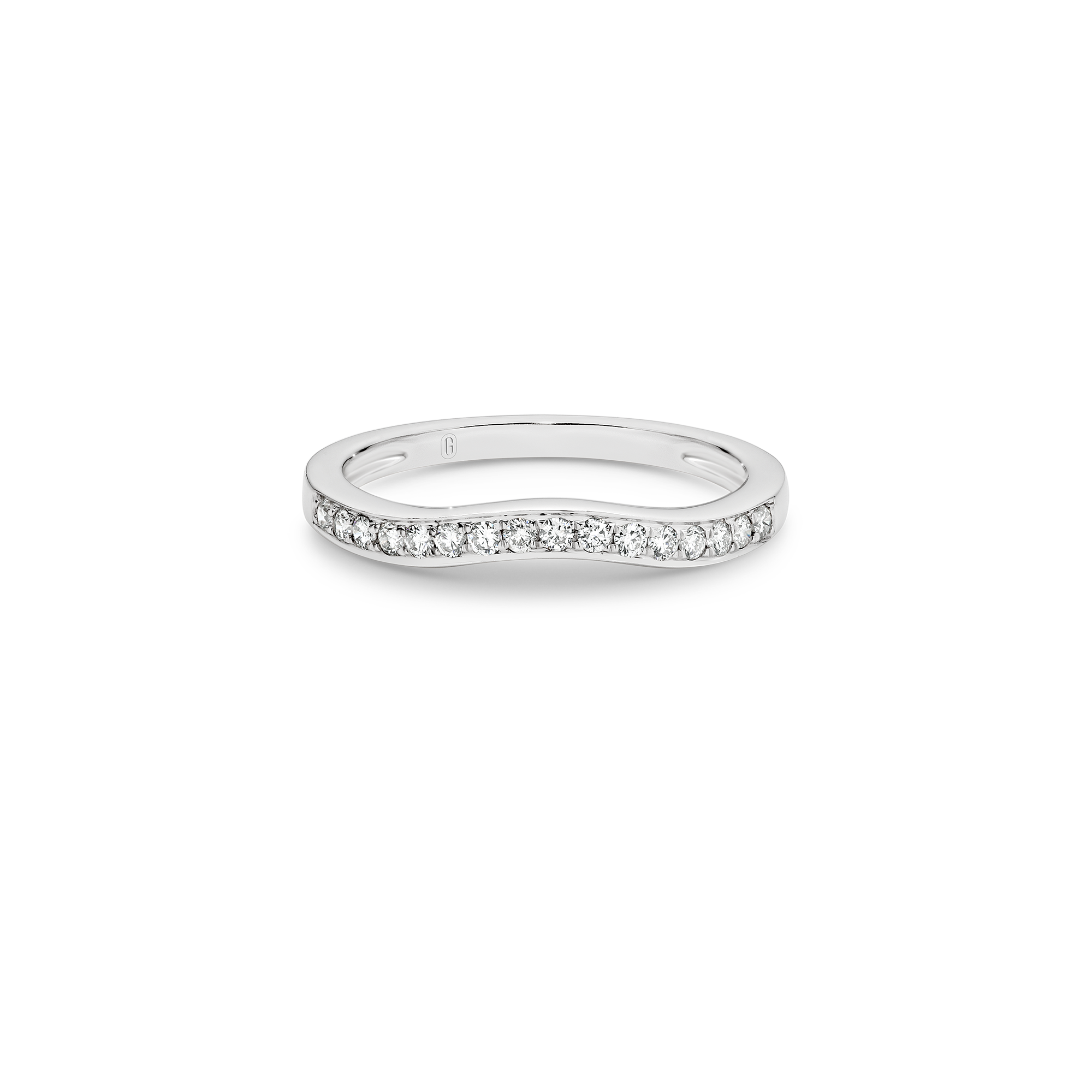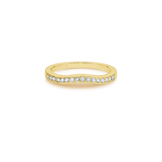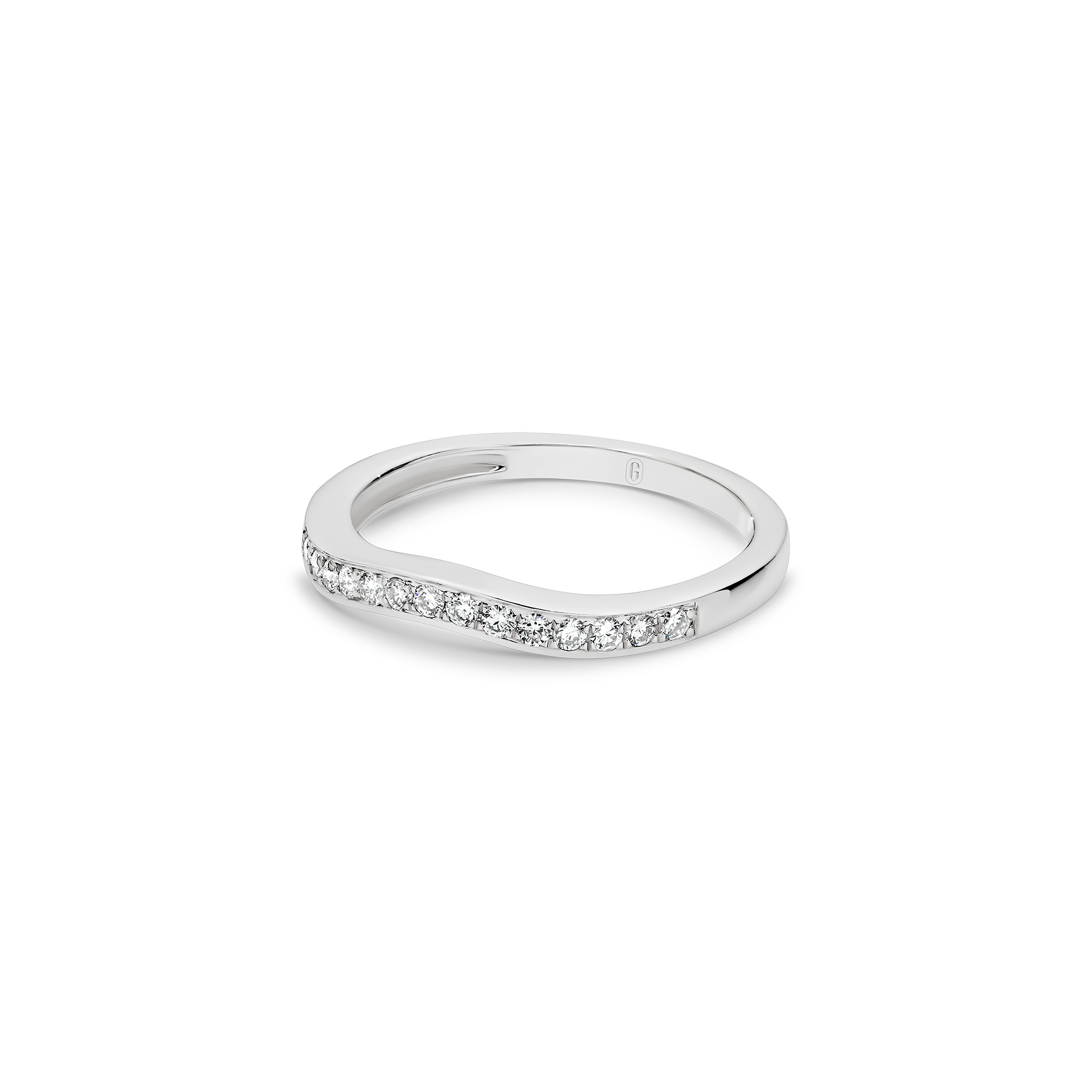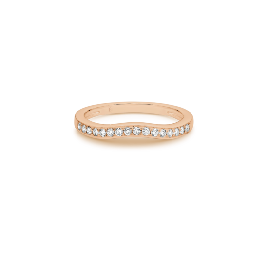 This minimalistic band is the perfect sparkly accompaniment for a low-set engagement ring, allowing for a snug fit. Also beautiful on its own as a solo ring, or stacked with other bands for an impressive show!