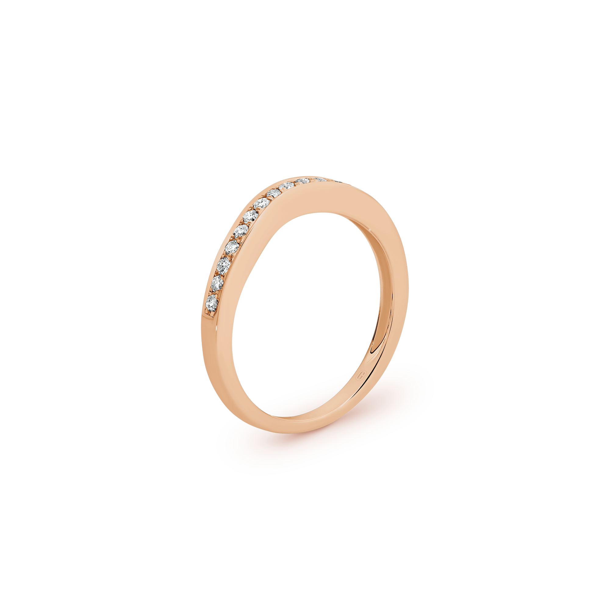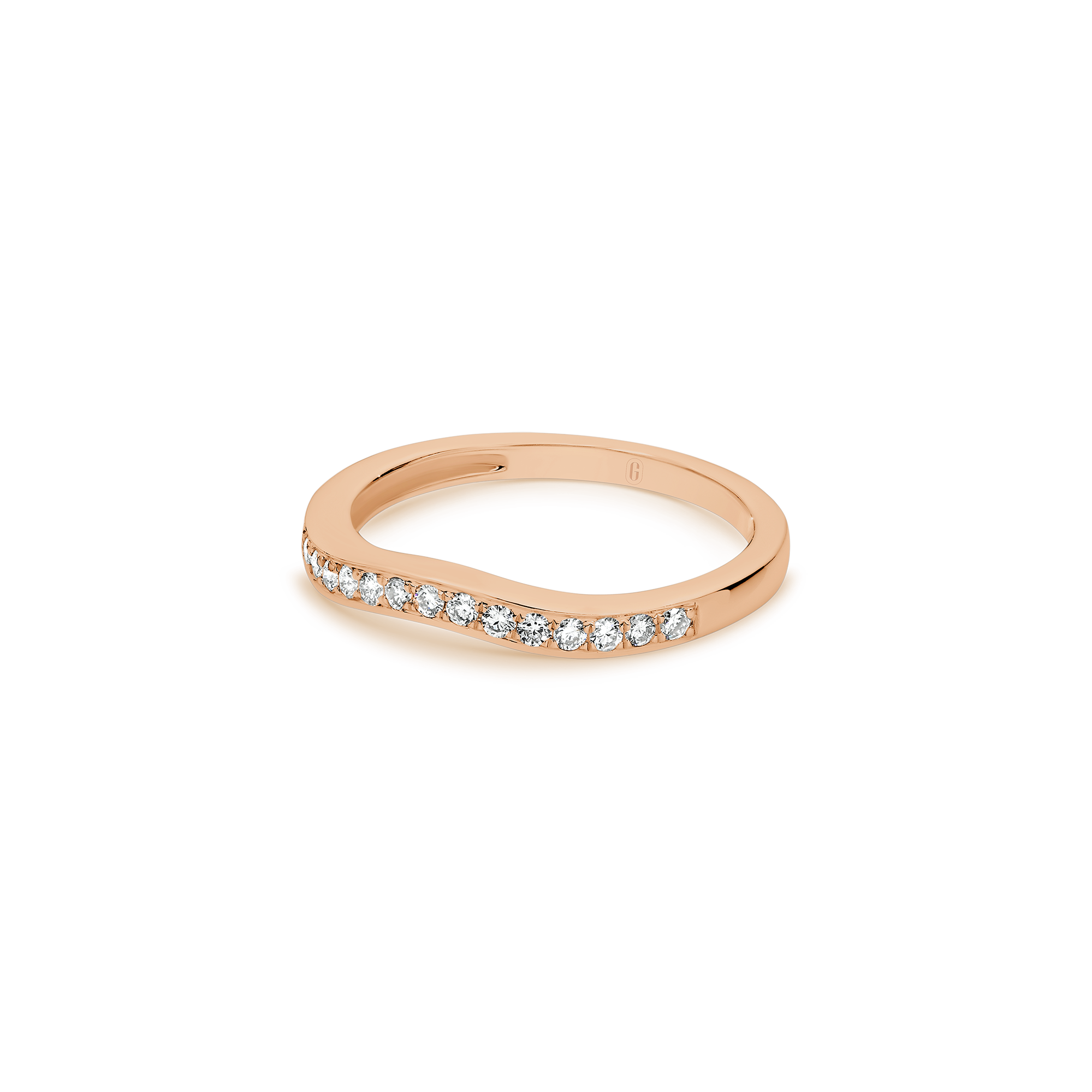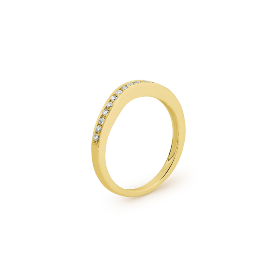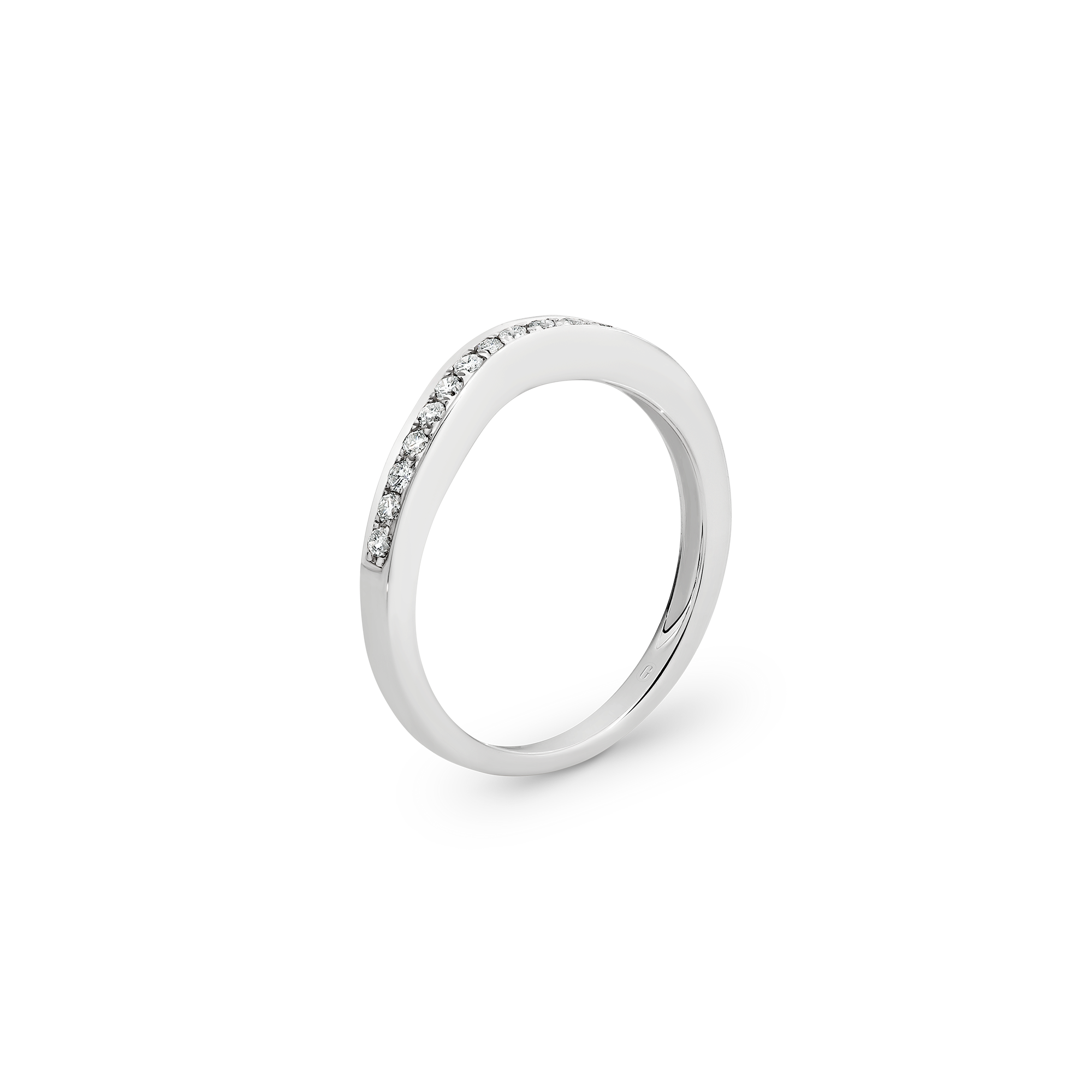 This minimalistic band is the perfect sparkly accompaniment for a low-set engagement ring, allowing for a snug fit. Also beautiful on its own as a solo ring, or stacked with other bands for an impressive show!