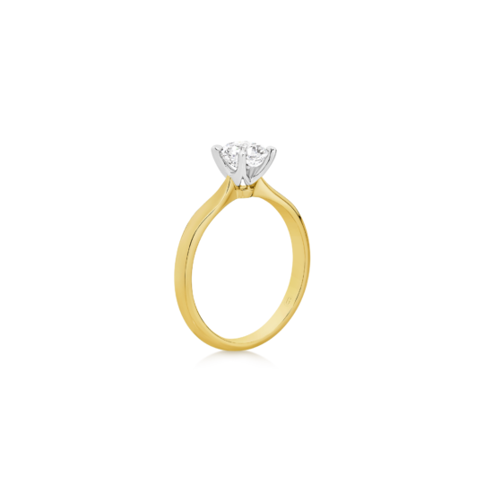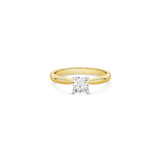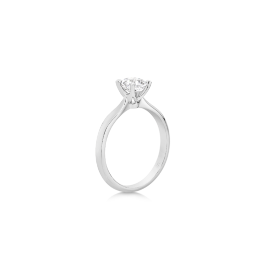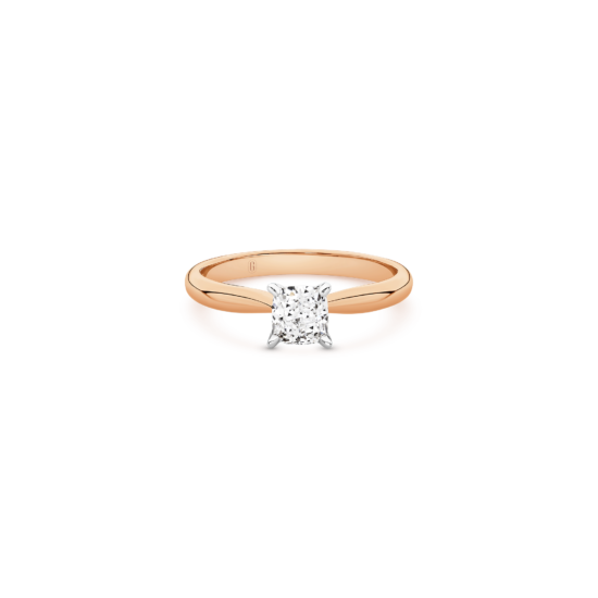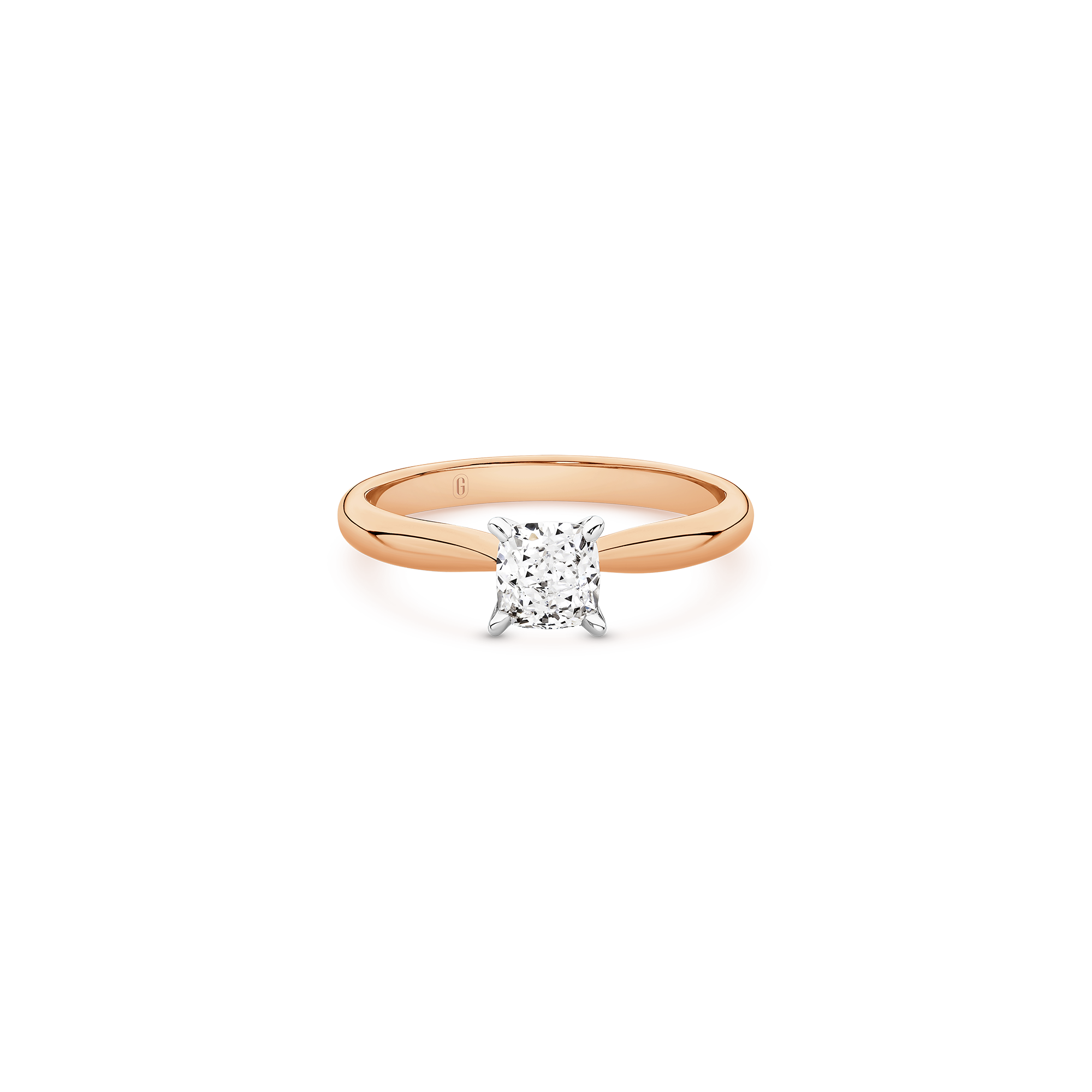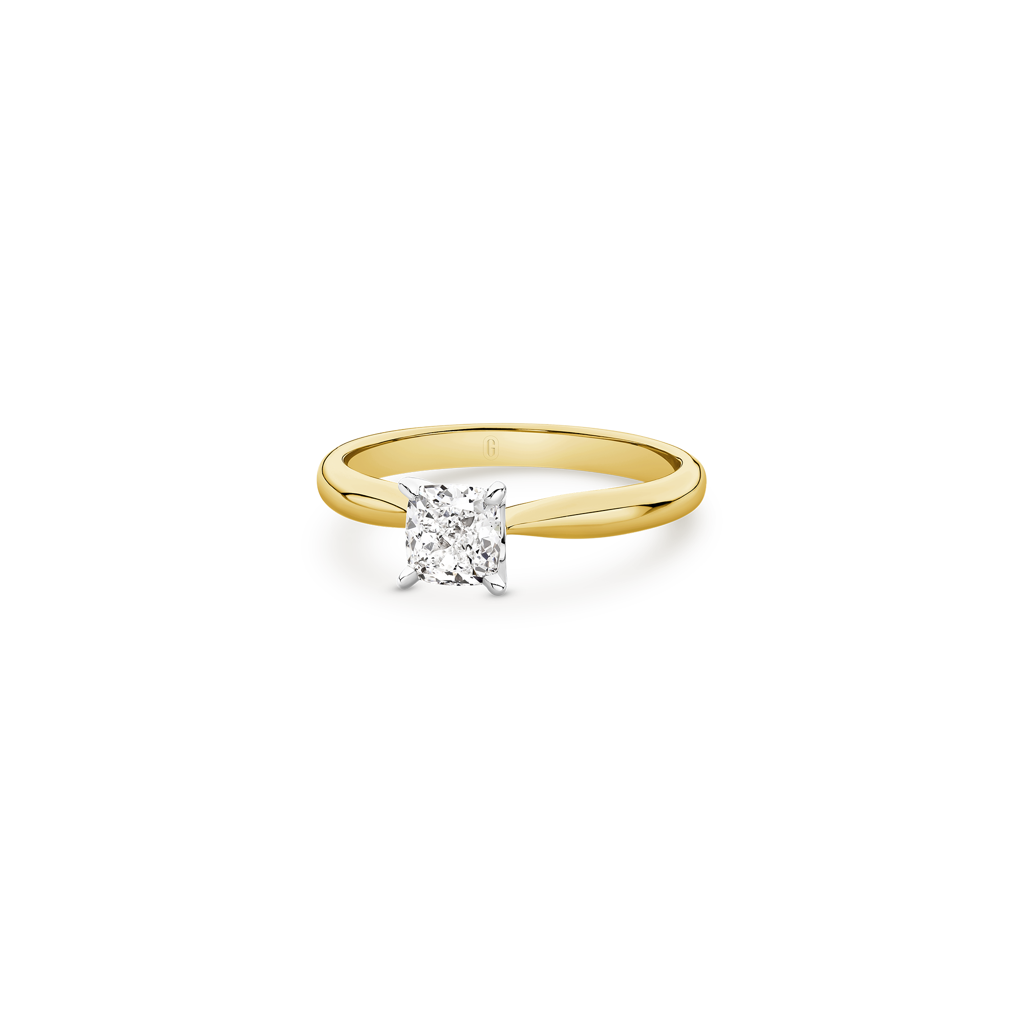 This exceptional piece is a tribute to timeless beauty, featuring a mesmerizing cushion cut diamond secured by a delicate 4-claw setting on a tapered solitaire band. The cushion cut, renowned for its romantic allure, takes centre stage in this exquisite design. Its unique blend of soft curves and brilliant facets creates a dance of light that is both captivating and enduring. Crafted with precision and passion, this ring is a symbol of your unique love story — a perfect fusion of tradition and contemporary style.