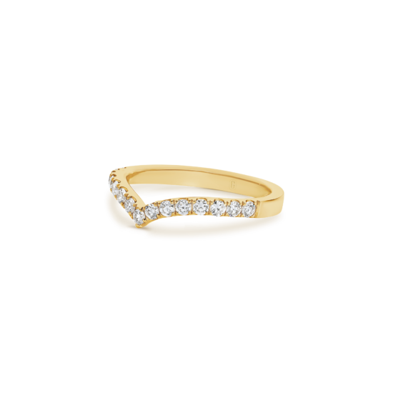 An elevated and contemporary alternative to the traditional band, our gorgeous V-shaped diamond ring ticks all the boxes! Encrusted with 15 glittering diamonds that highlight the delicate dip in the design, this must-have is much more than the supporting act — eye-catching when worn solo!