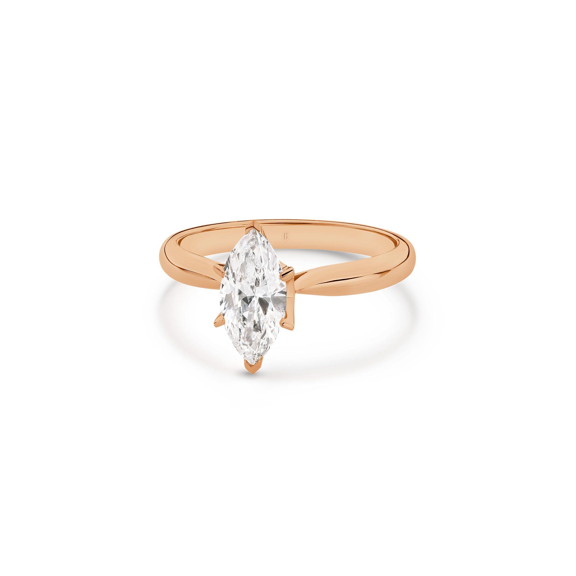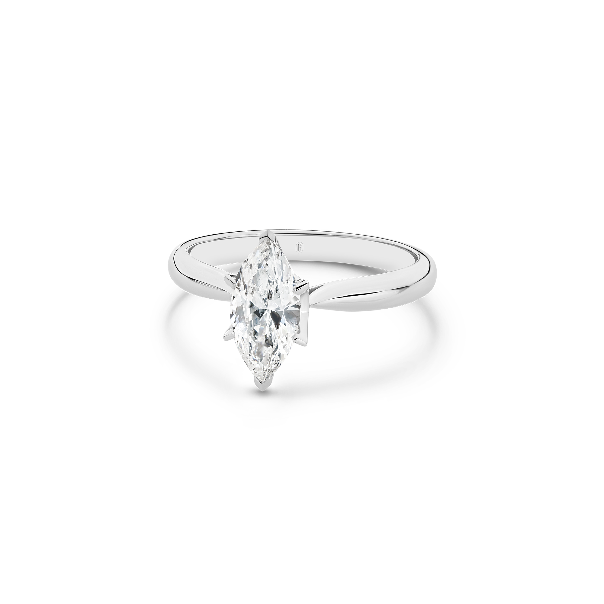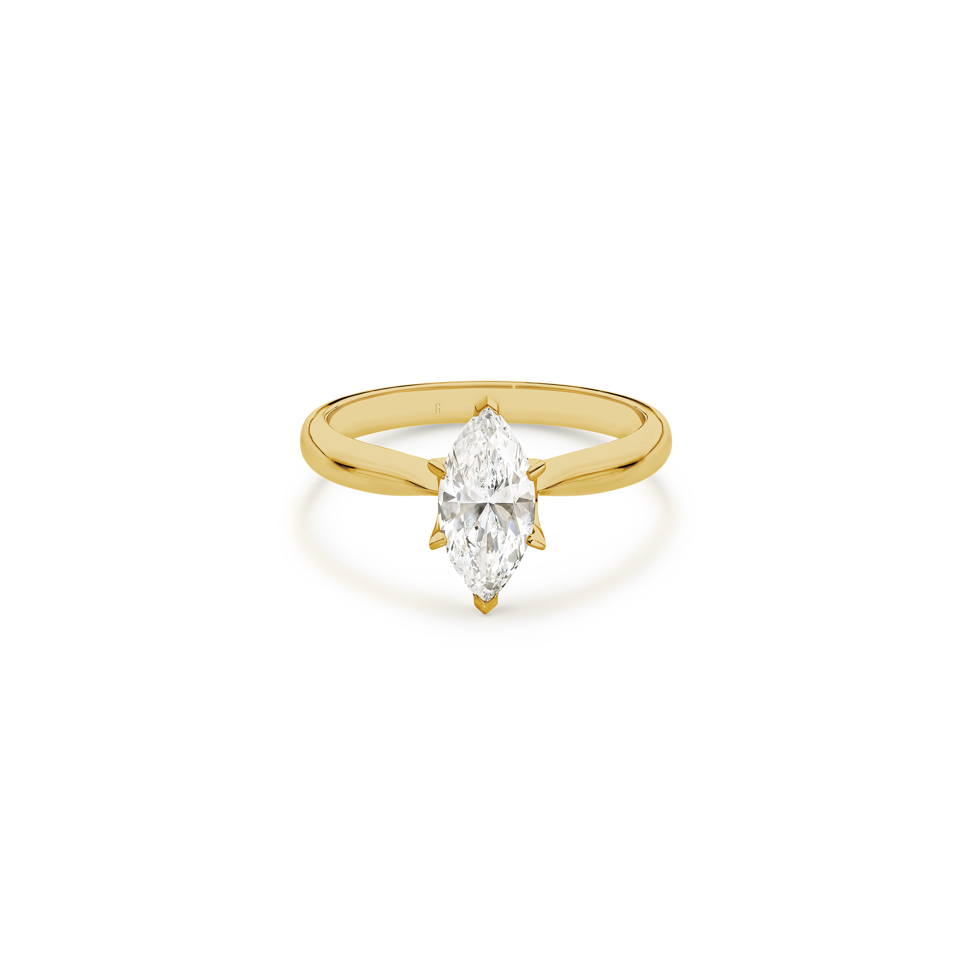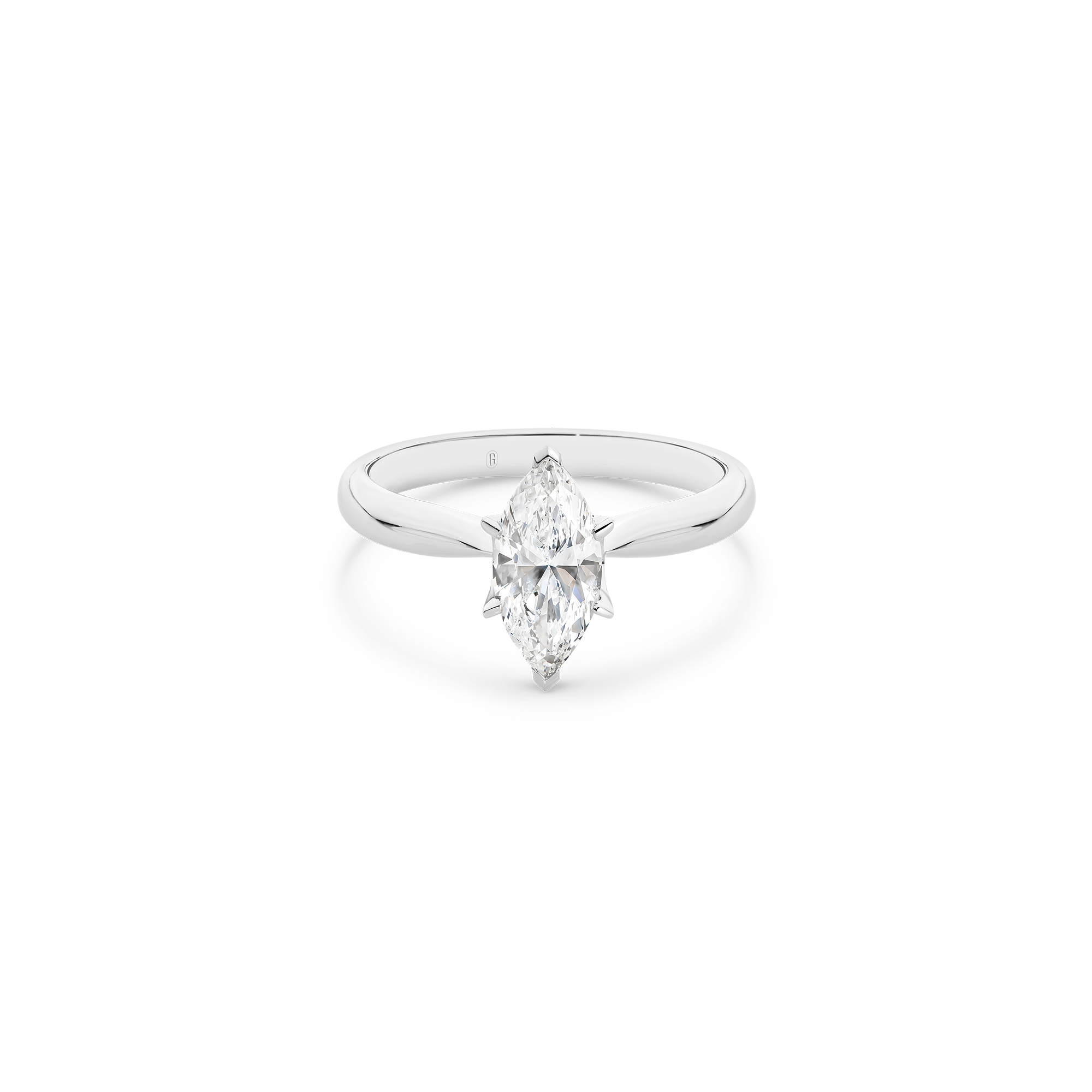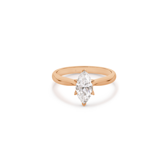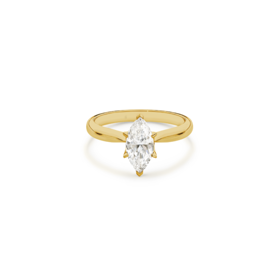 This exquisite piece features a marquise cut diamond delicately held in a 6-claw setting on a solitaire band. The marquise cut diamond, with its graceful and elongated shape, is a symbol of enduring love. It exudes a timeless charm and brilliance that has captured hearts for centuries. The simplicity of the solitaire band is a canvas for the diamond’s captivating beauty. It allows the stone to take centre stage, representing the purity and strength of your love story.
