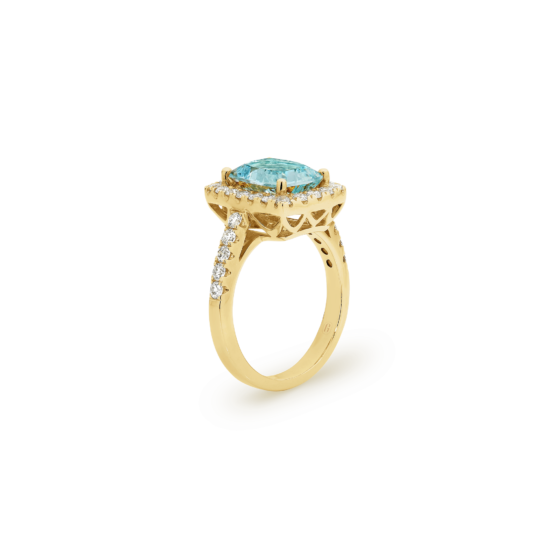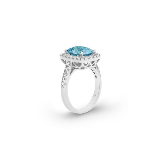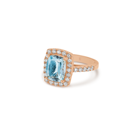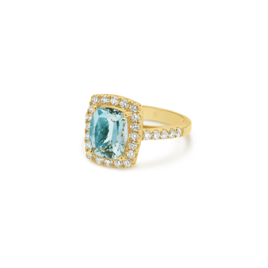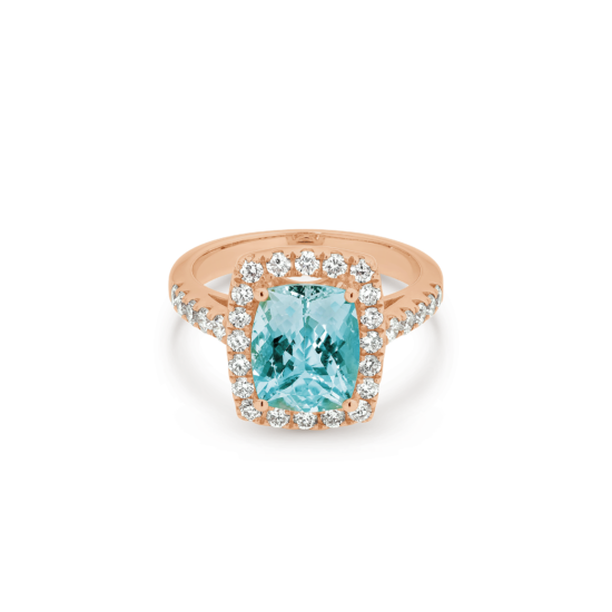 CUSHION CUT AQUAMARINE DIAMOND HALO RING