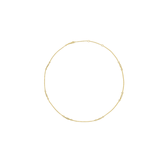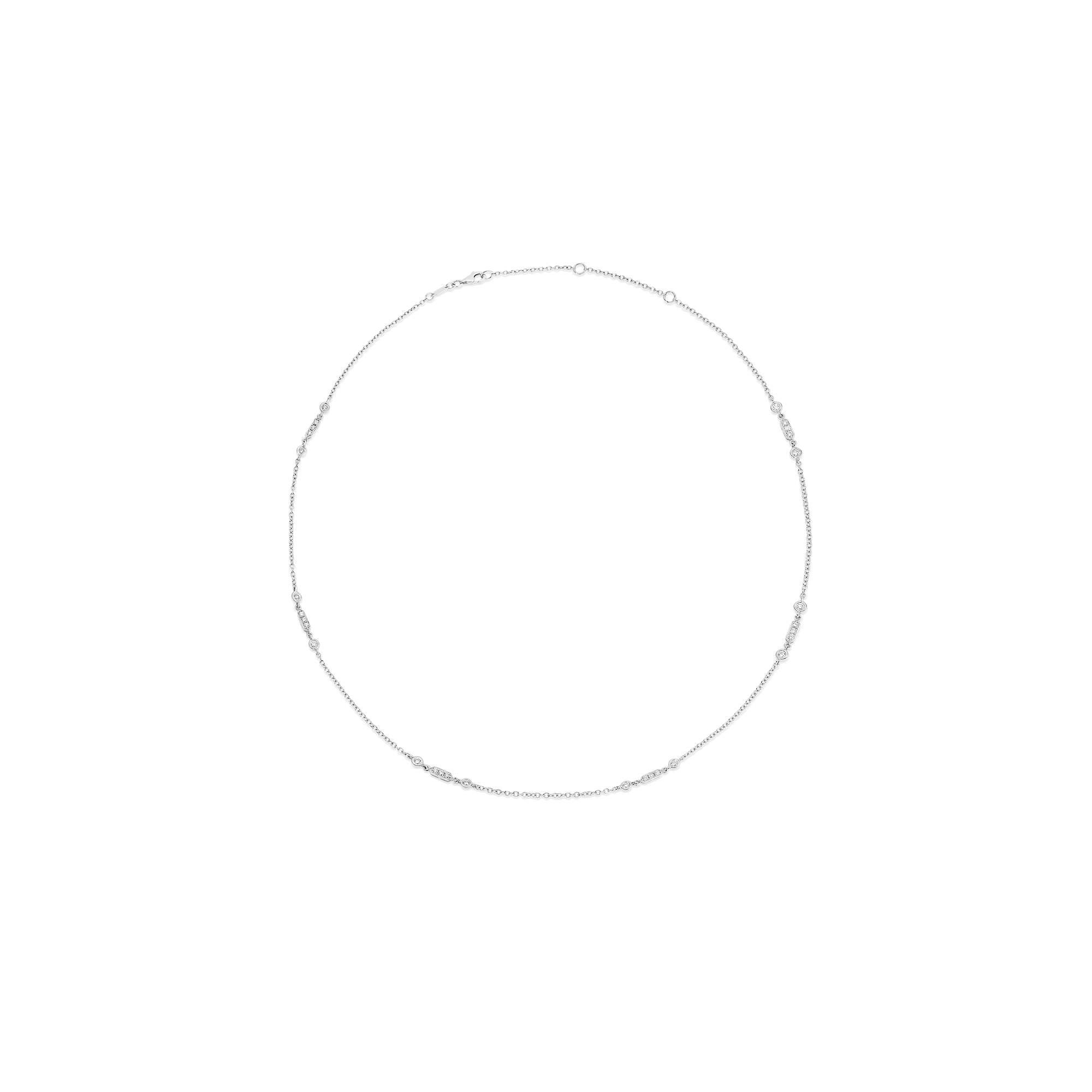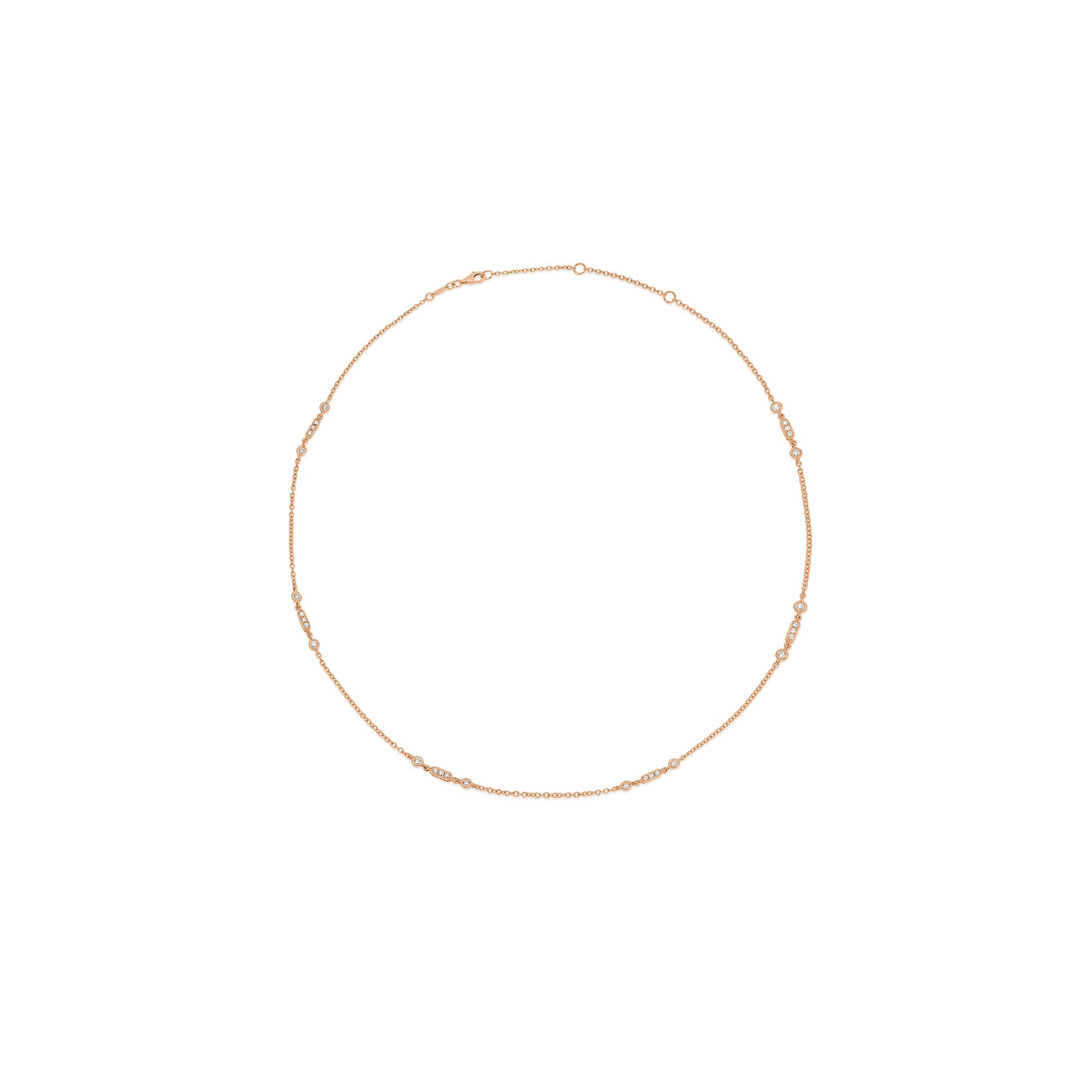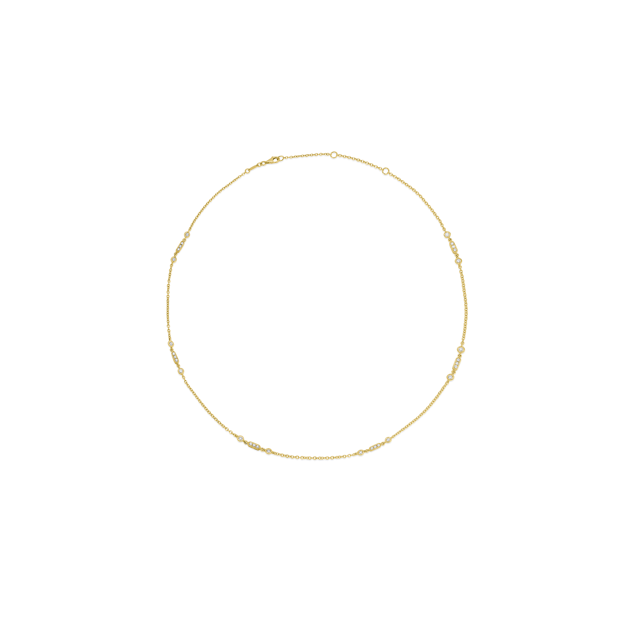 This delicate, art-deco inspired diamond necklace features 6 symmetrical stations of bezel set round cut diamonds in playful geometric patterns. Elegant when worn solo, or an impressive addition that will elevate your favourite layered look. Adjustable so that you can wear it at three different lengths!