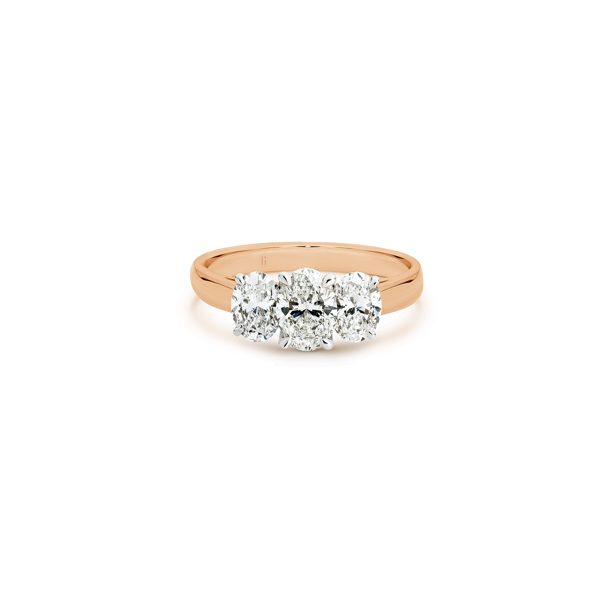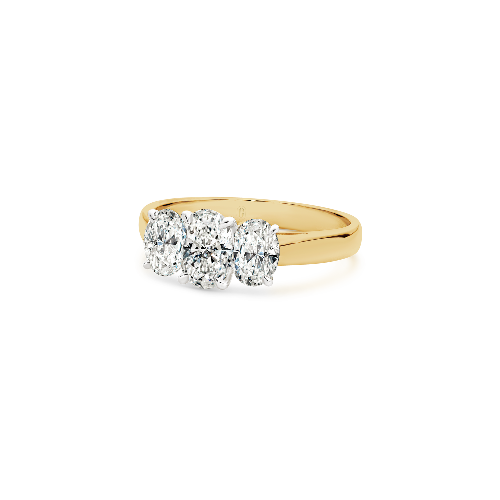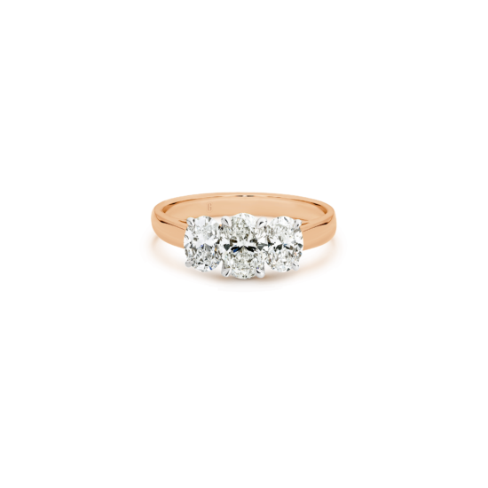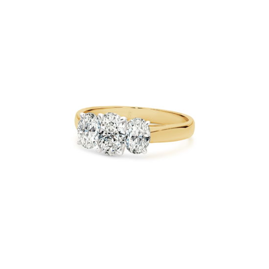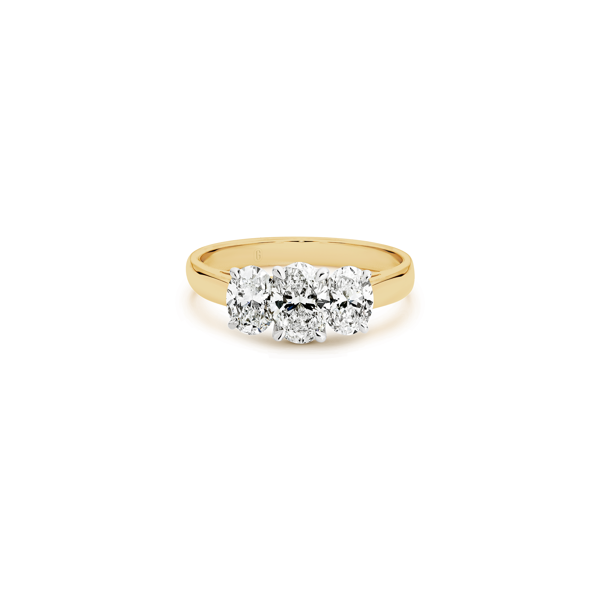 Symbolising your past present and future, a trilogy design is not only stunning, but meaningful. Crafted in 18k gold, set with brilliant oval cut diamonds in an eight-claw setting, you can play with diamond size to customise this beauty to suit your style.