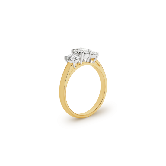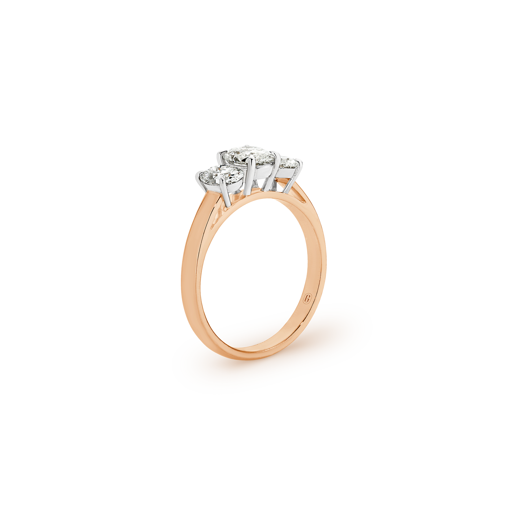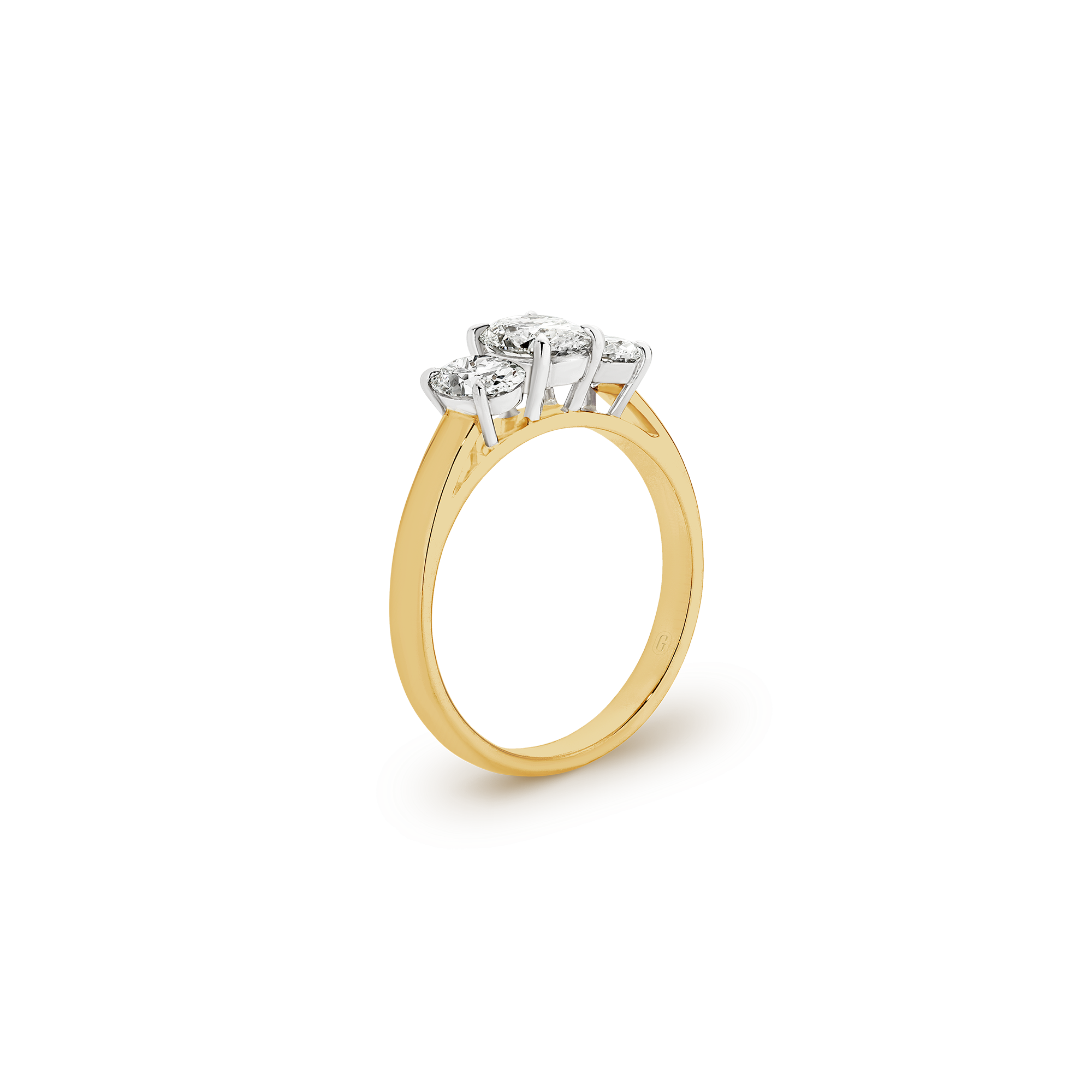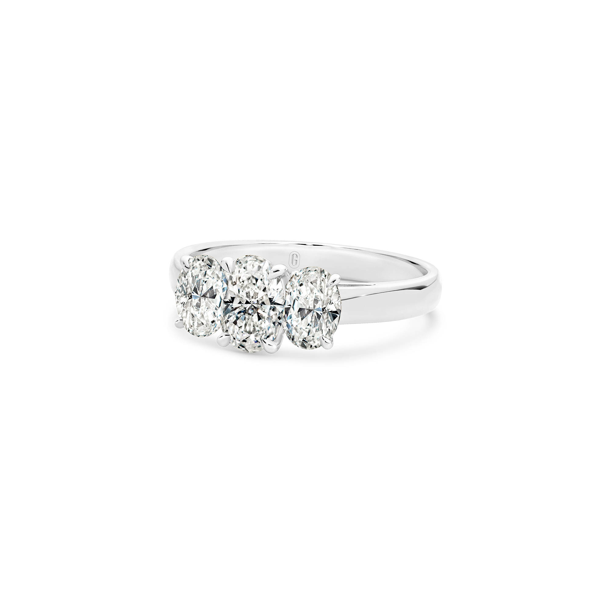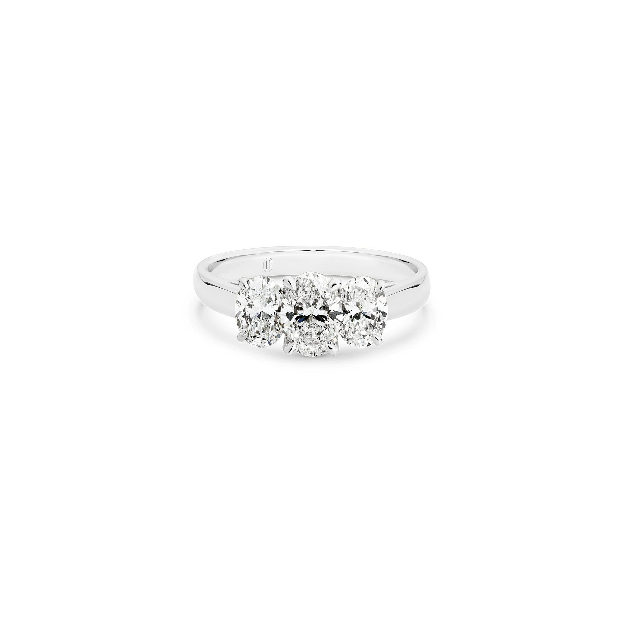 Symbolising your past present and future, a trilogy design is not only stunning, but meaningful. Crafted in 18k gold, set with brilliant oval cut diamonds in an eight-claw setting, you can play with diamond size to customise this beauty to suit your style.