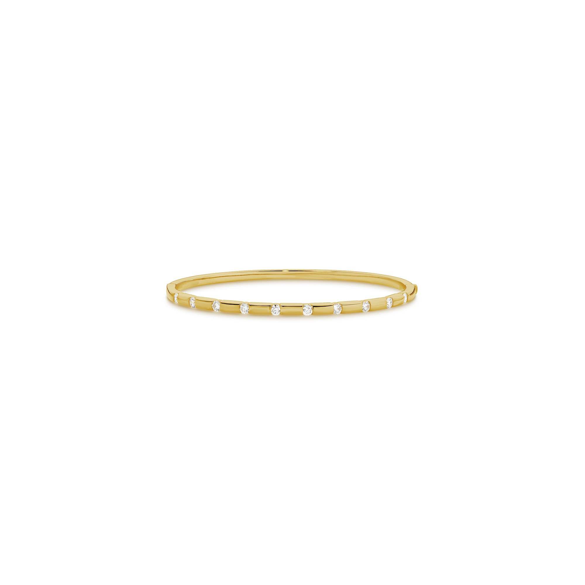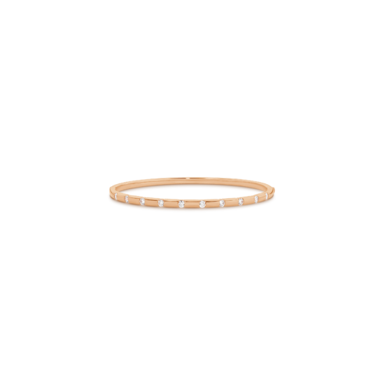 A lustrous gold bangle delicately sprinkled with 10 brilliant round cut diamonds for just the right amount of sparkle. Easy wearing, it transitions perfectly from day to night and is a must-have in any bangle stack!