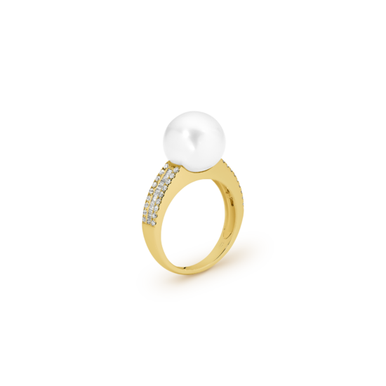 FLOATING SOUTH SEA PEARL DIAMOND RING