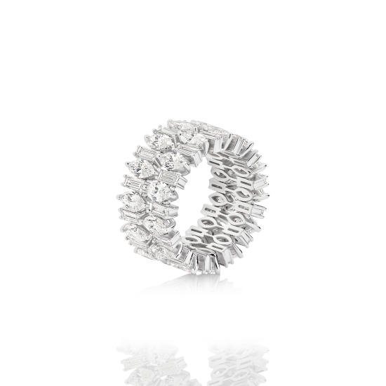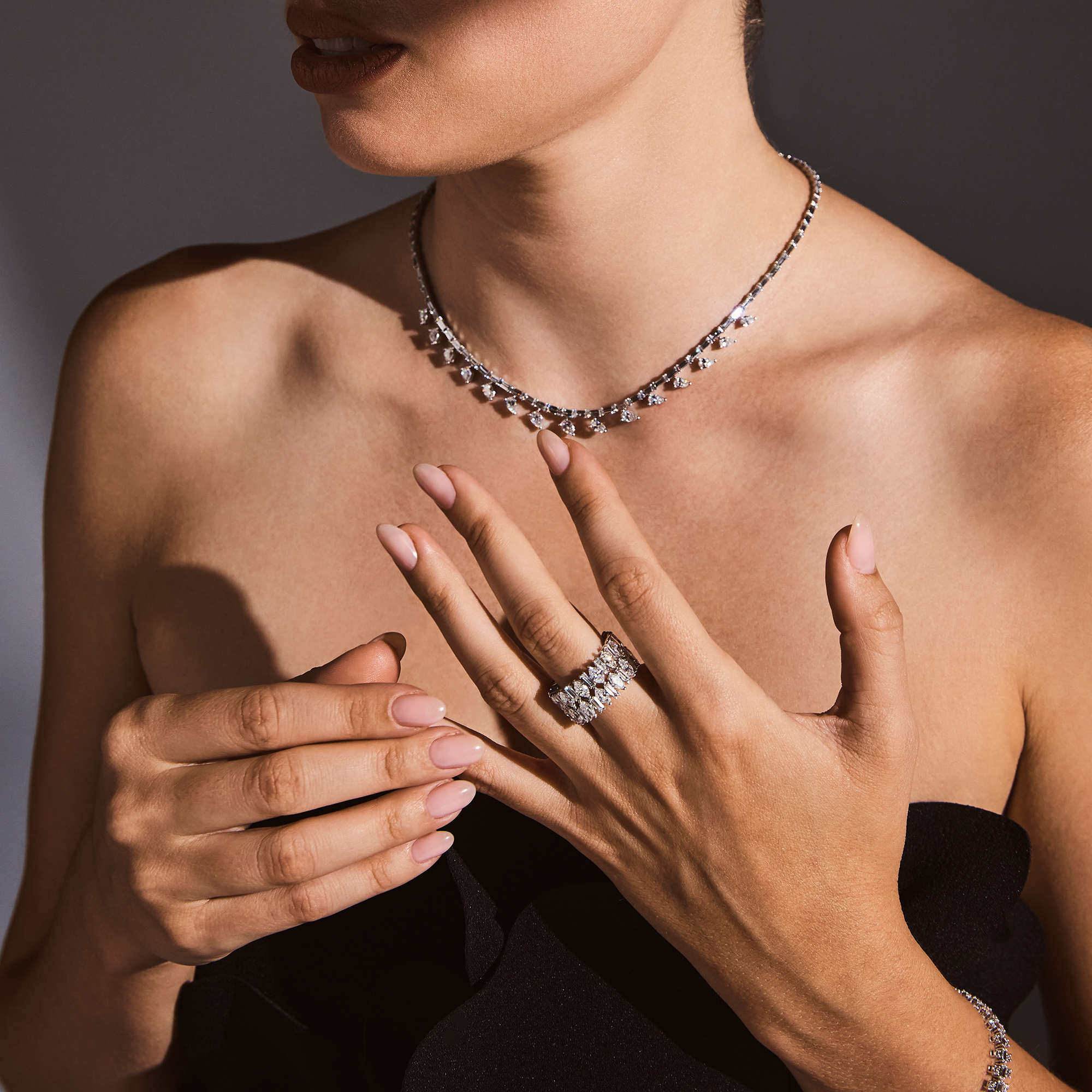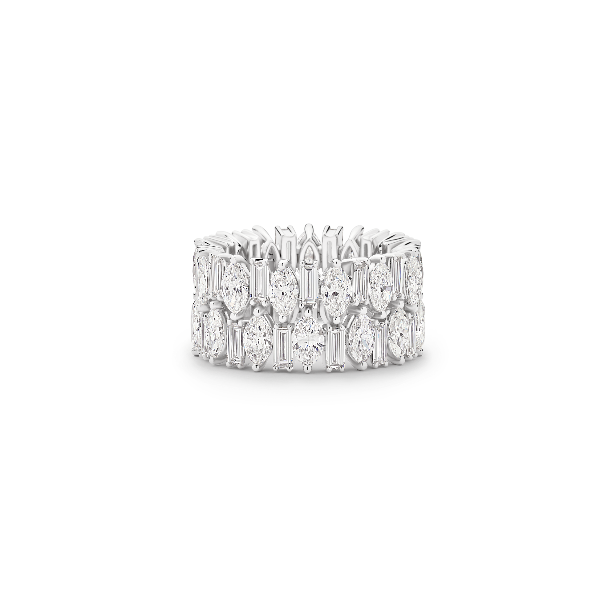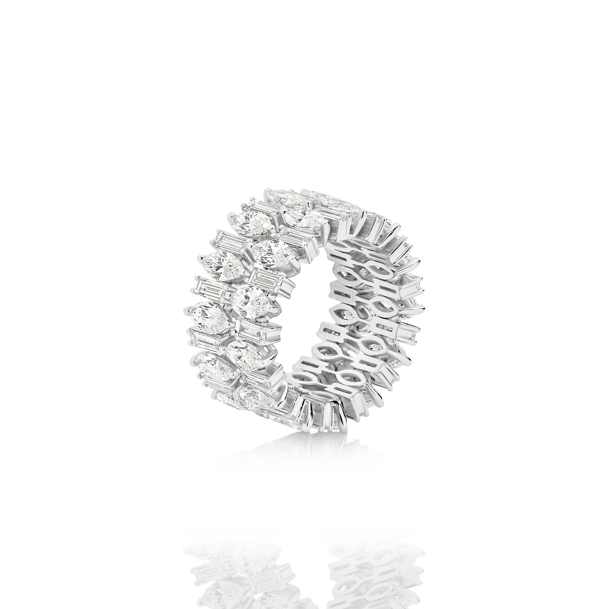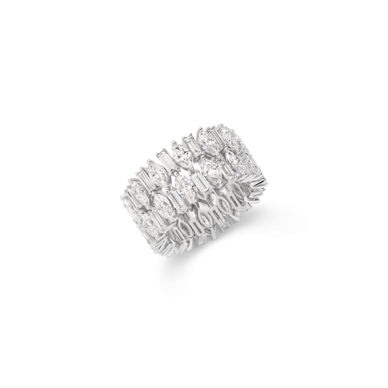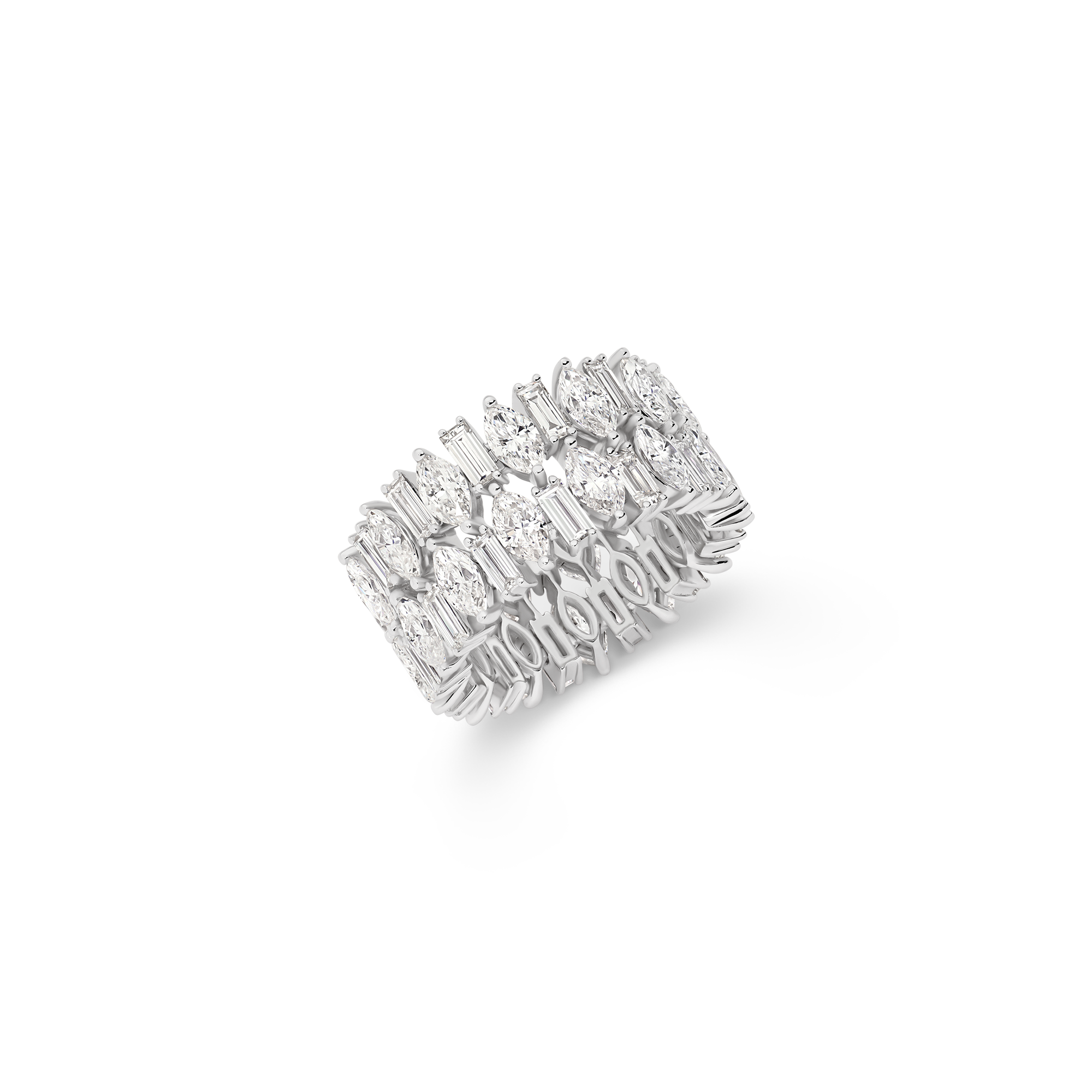 Unlike traditional rigid bands, this ring features a collapsible lattice. Every diamond is individually set on a miniature pivot, allowing the ring to compress and expand without compromising the integrity of the stones. It is a “living” piece of architecture that adapts to your body’s natural changes.
