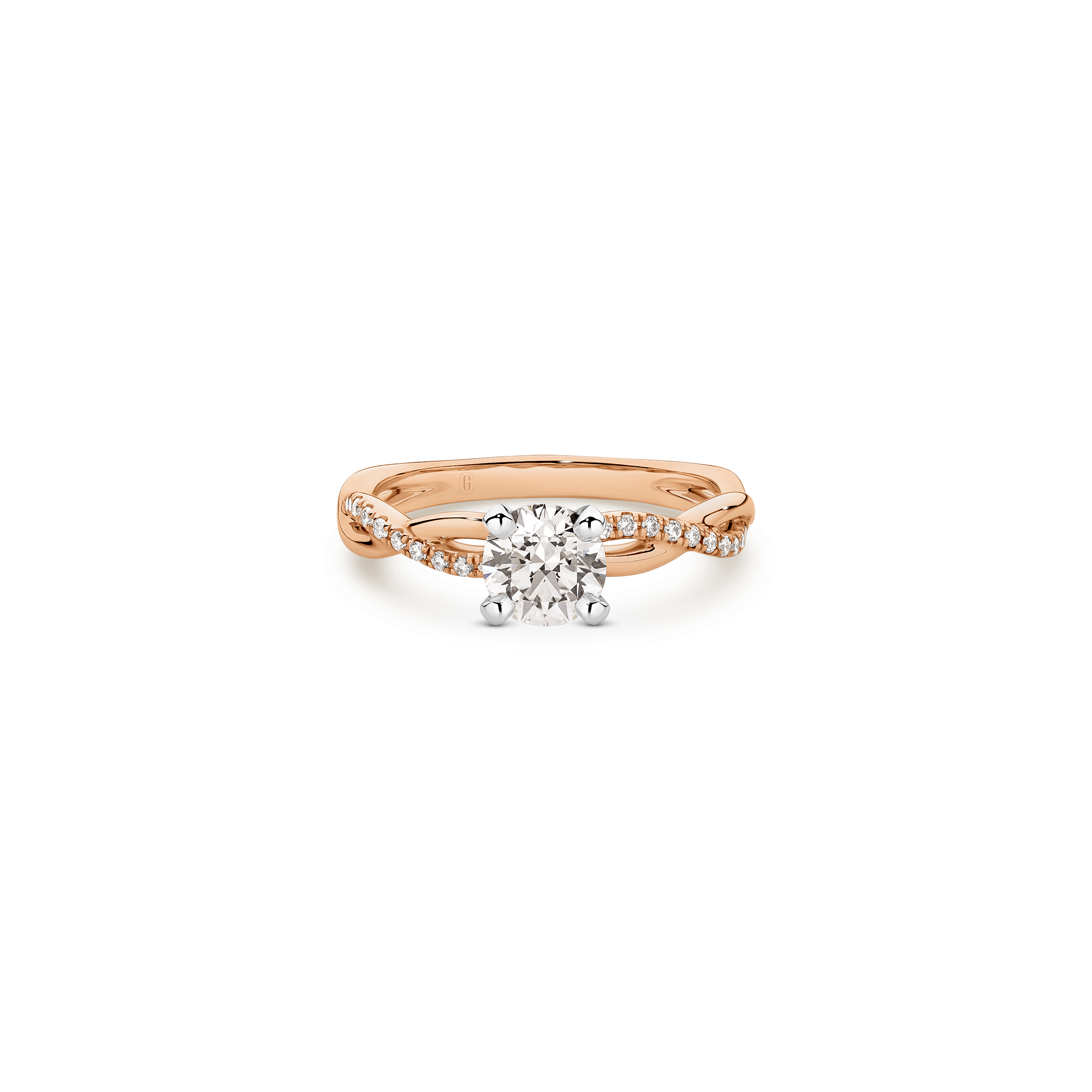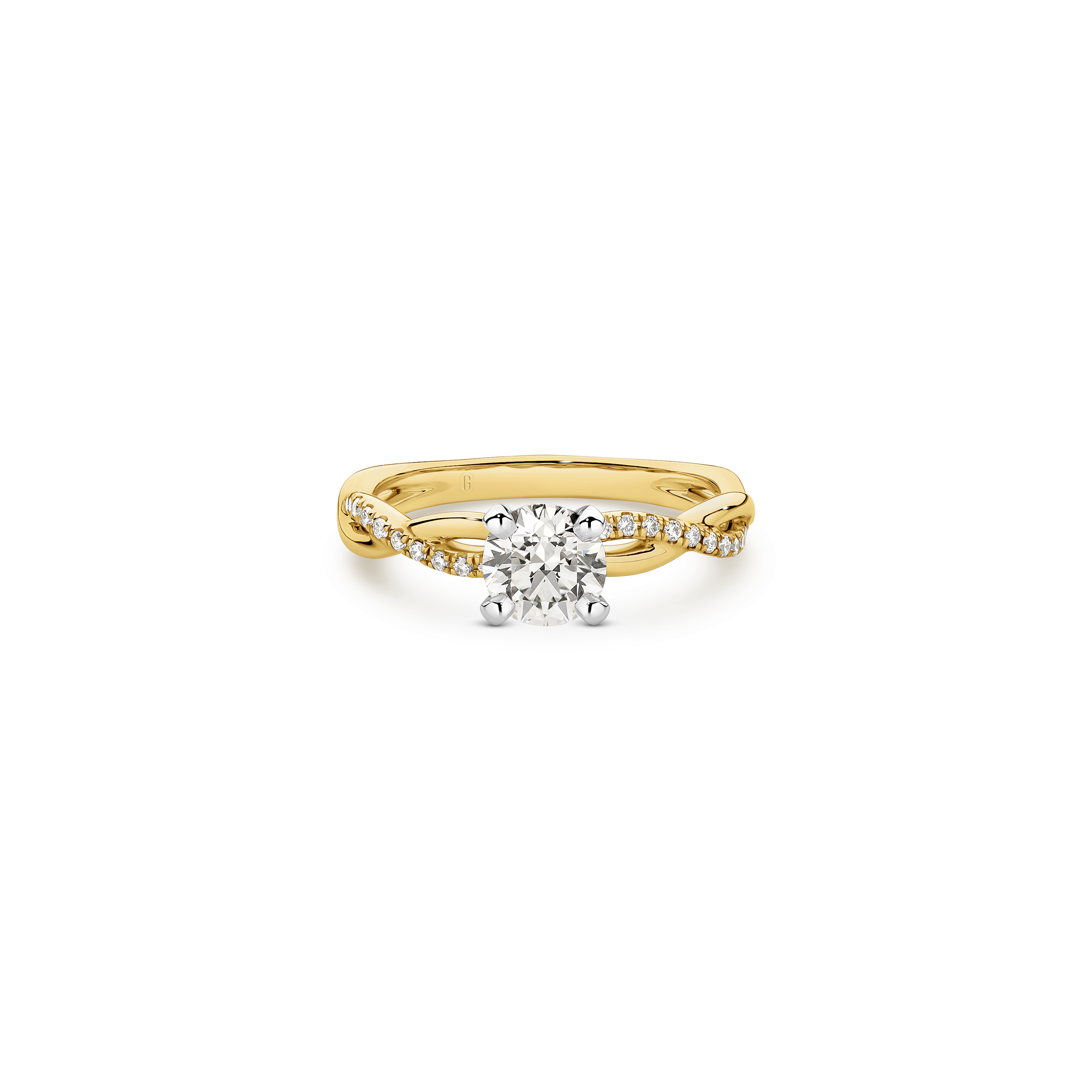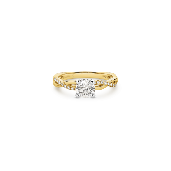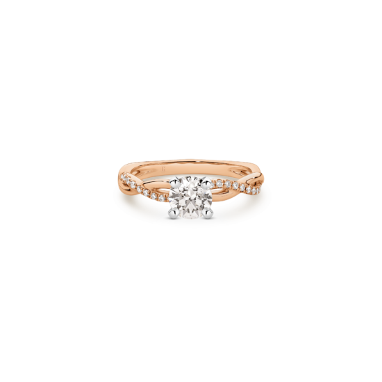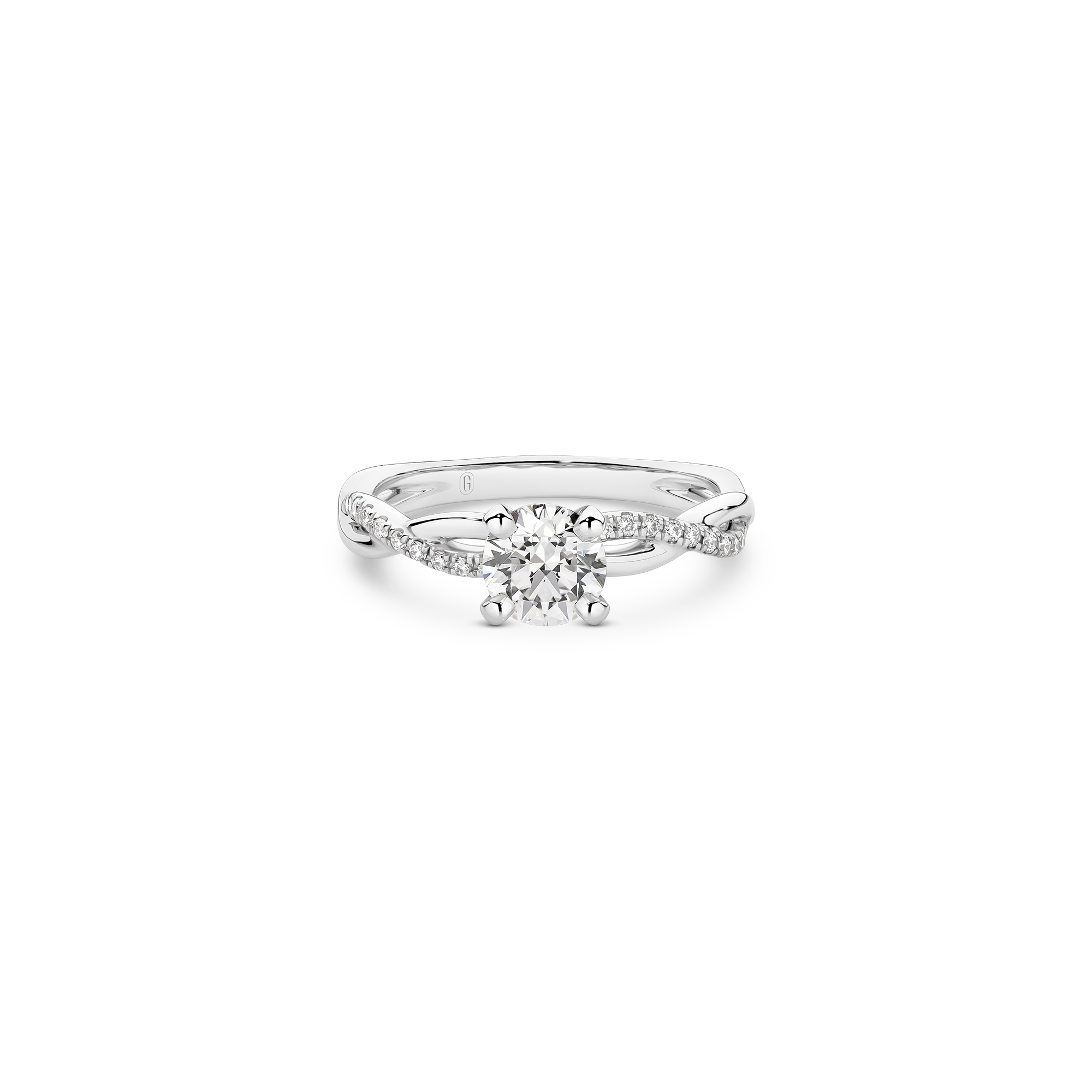 Indulge in the perfect balance of timeless beauty and modern elegance. At its heart lies a brilliant round diamond, radiating light and brilliance. The band features a simple, twisted design, offering a sleek, understated look that lets the diamond take centre stage.