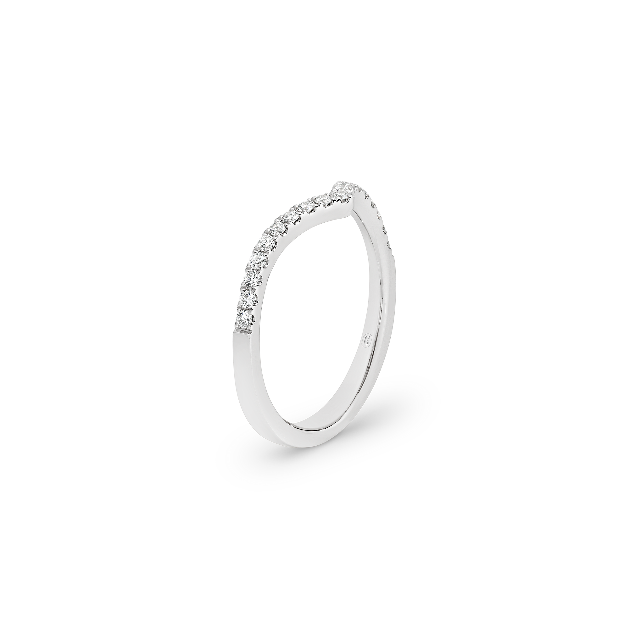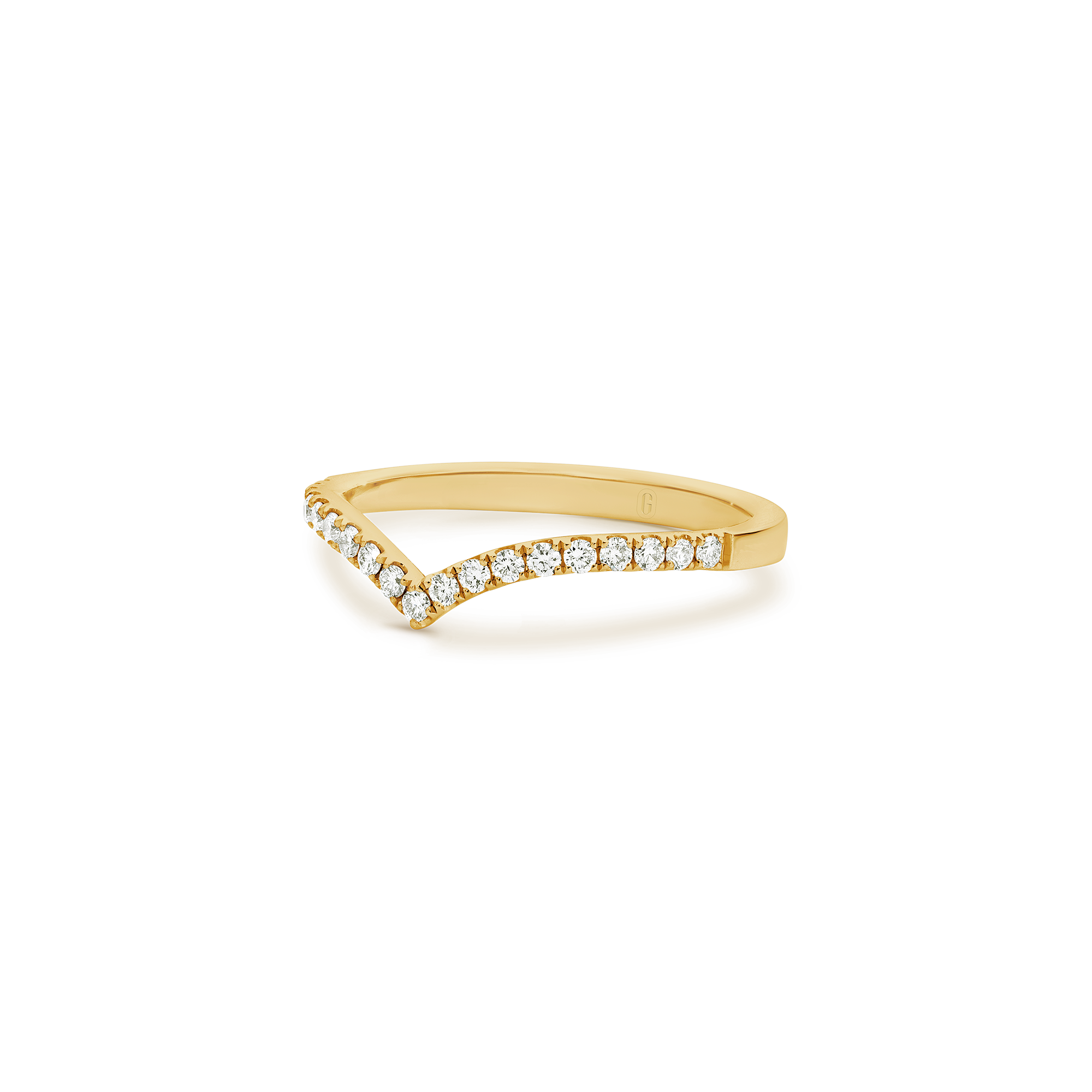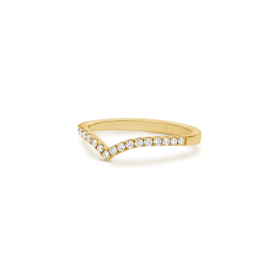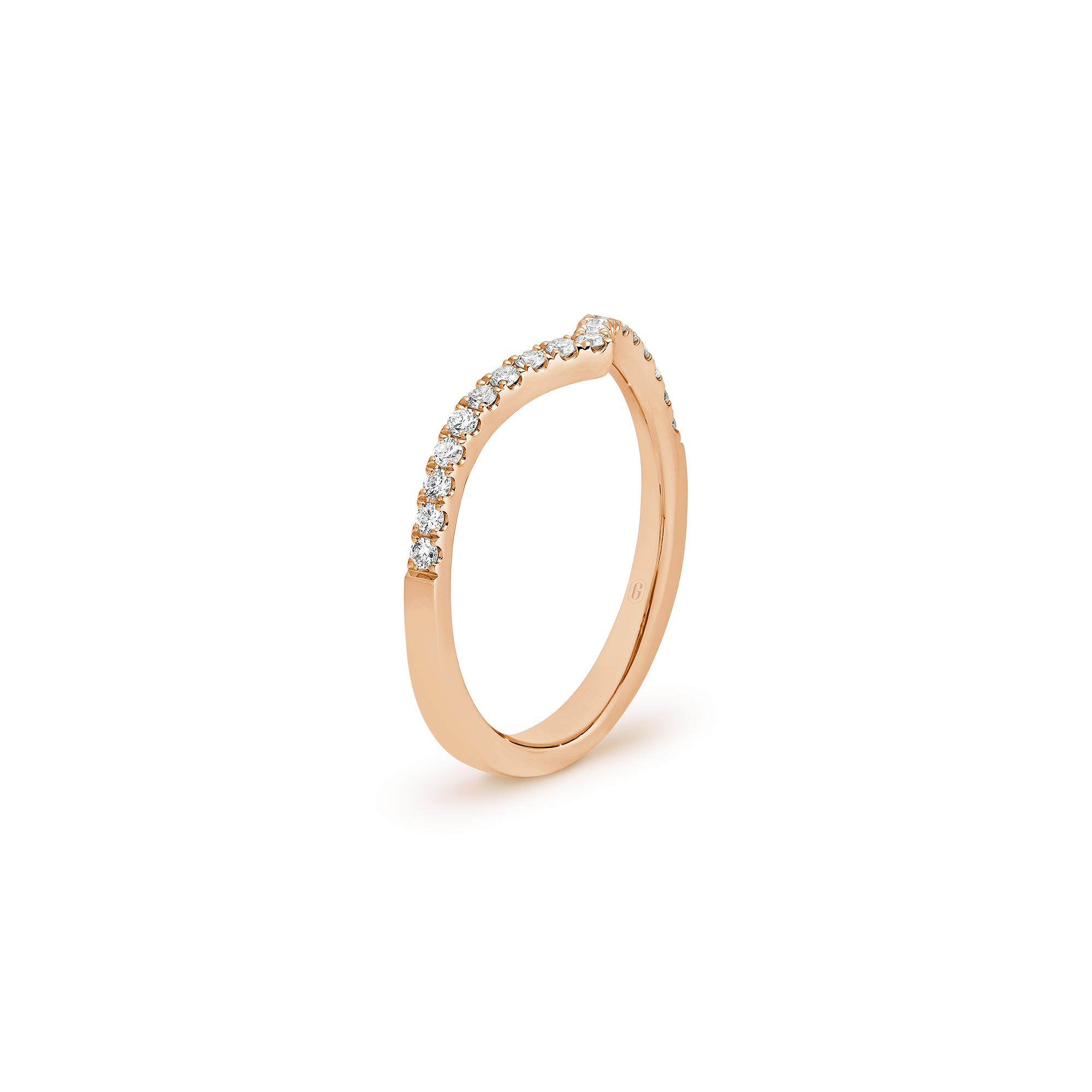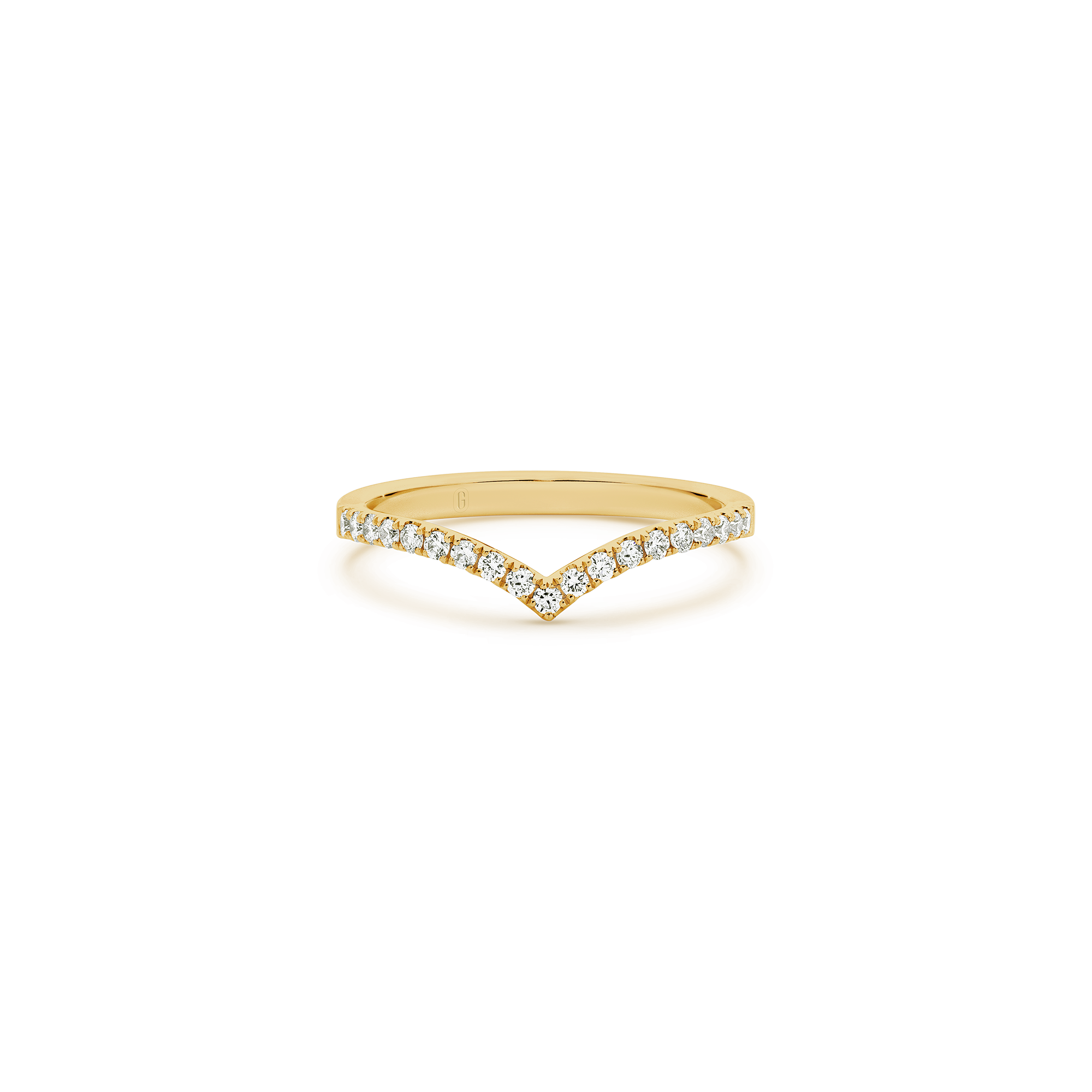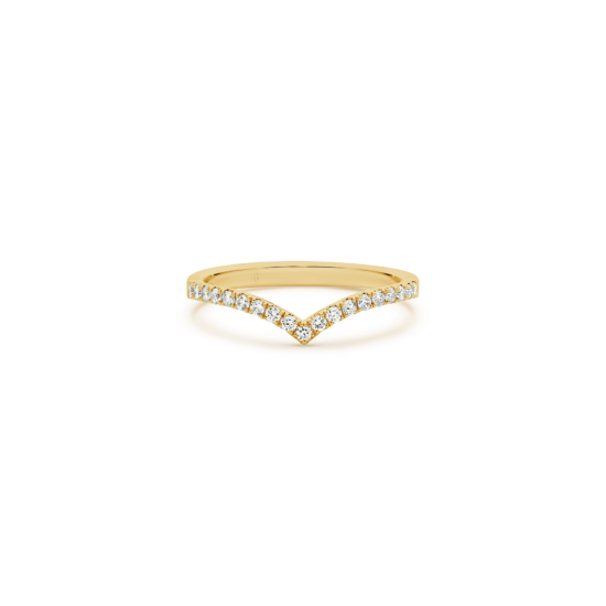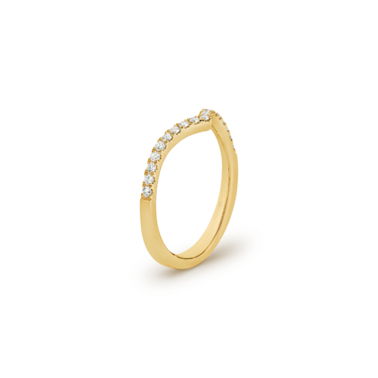Refined simplicity! The most delicate drop band in our collection is sprinkled with glistening brilliant round cut round diamonds, set in 18k gold. Designed to be layered creatively with other bands from our collection, so you can create a look as unique as you are!
