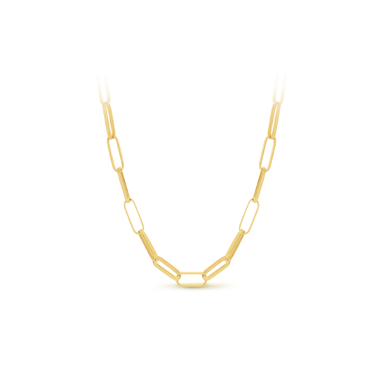 This chic accessory features sleek, elongated links in radiant gold. Crafted from premium gold, its distinctive link design exudes a modern, understated allure. Ideal for layering or wearing solo, this versatile piece adds a refined touch to any ensemble, making it a timeless staple in your jewellery collection.