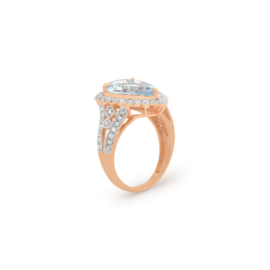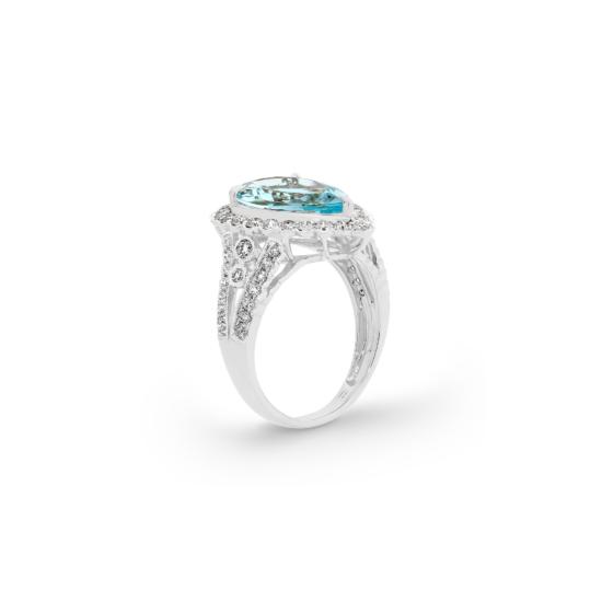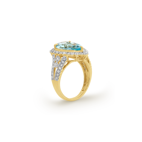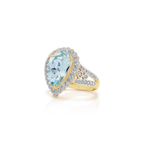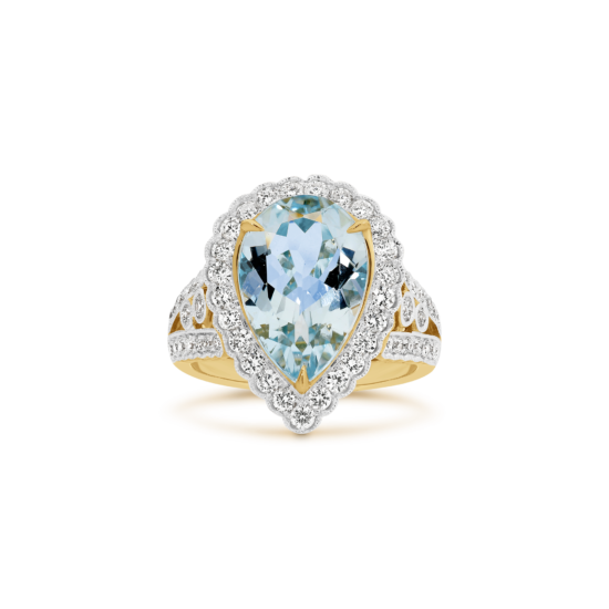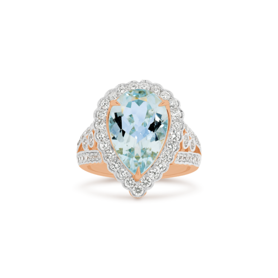 PEAR CUT AQUAMARINE MILGRAIN DIAMOND RING