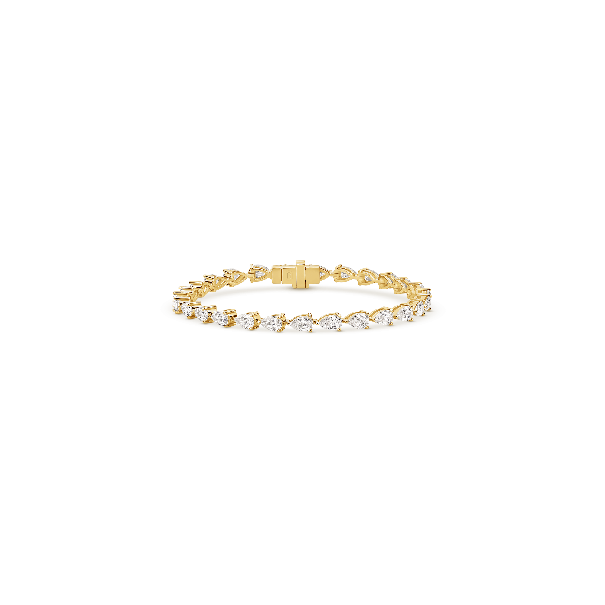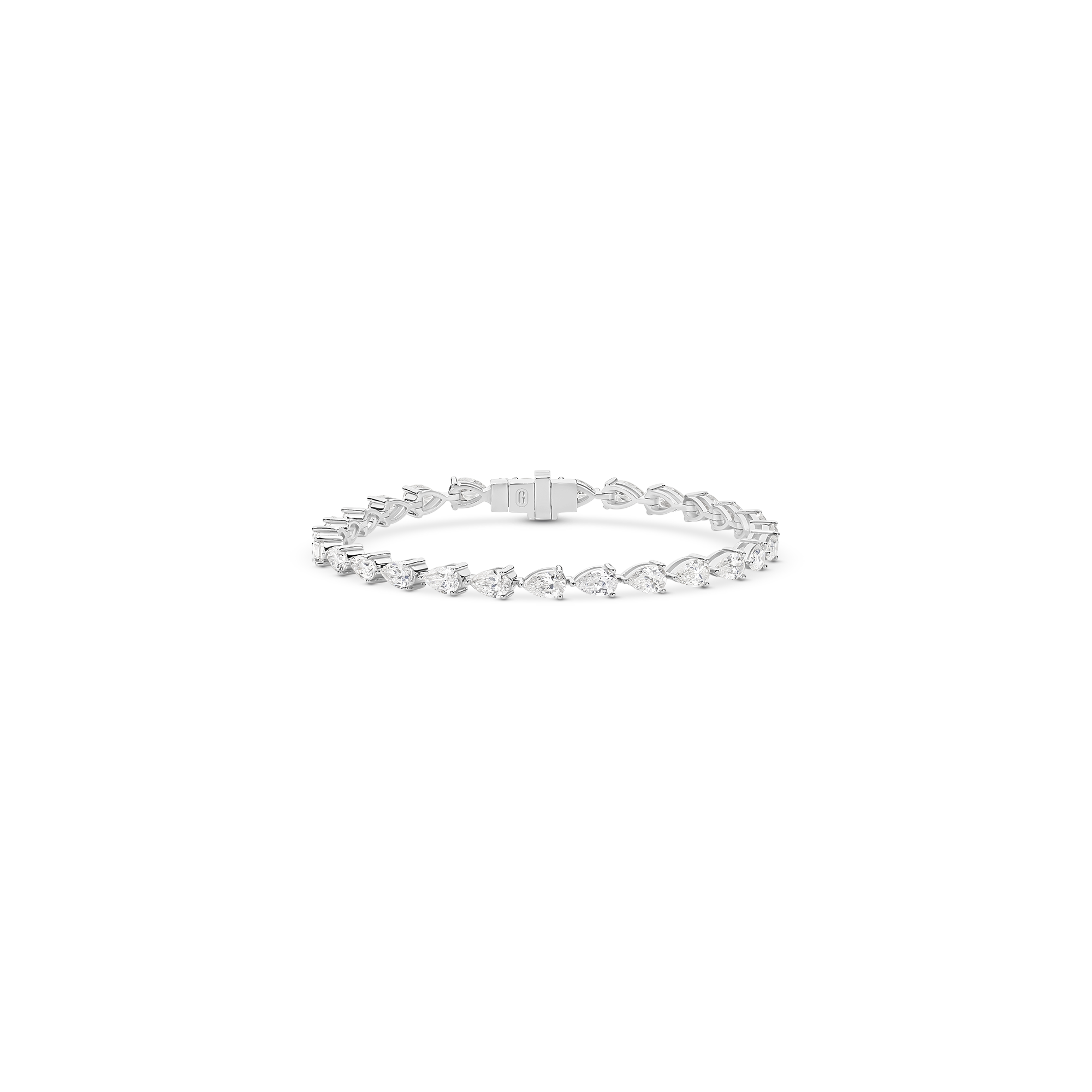 A modern take on a timeless classic, this pear-cut diamond tennis bracelet exudes effortless sophistication. Each horizontally set pear-shaped diamond is meticulously arranged to create a seamless flow of brilliance, enhancing its captivating silhouette. Crafted for those who appreciate bold elegance, this exquisite bracelet is the perfect finishing touch for life’s most extraordinary moments.