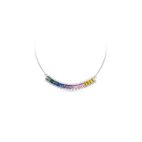 Dive into the Spectrum of Elegance with Our Rainbow Sapphire Necklace — A Seamless Gradation of Colours, Where Each Hue Tells a Unique Tale!