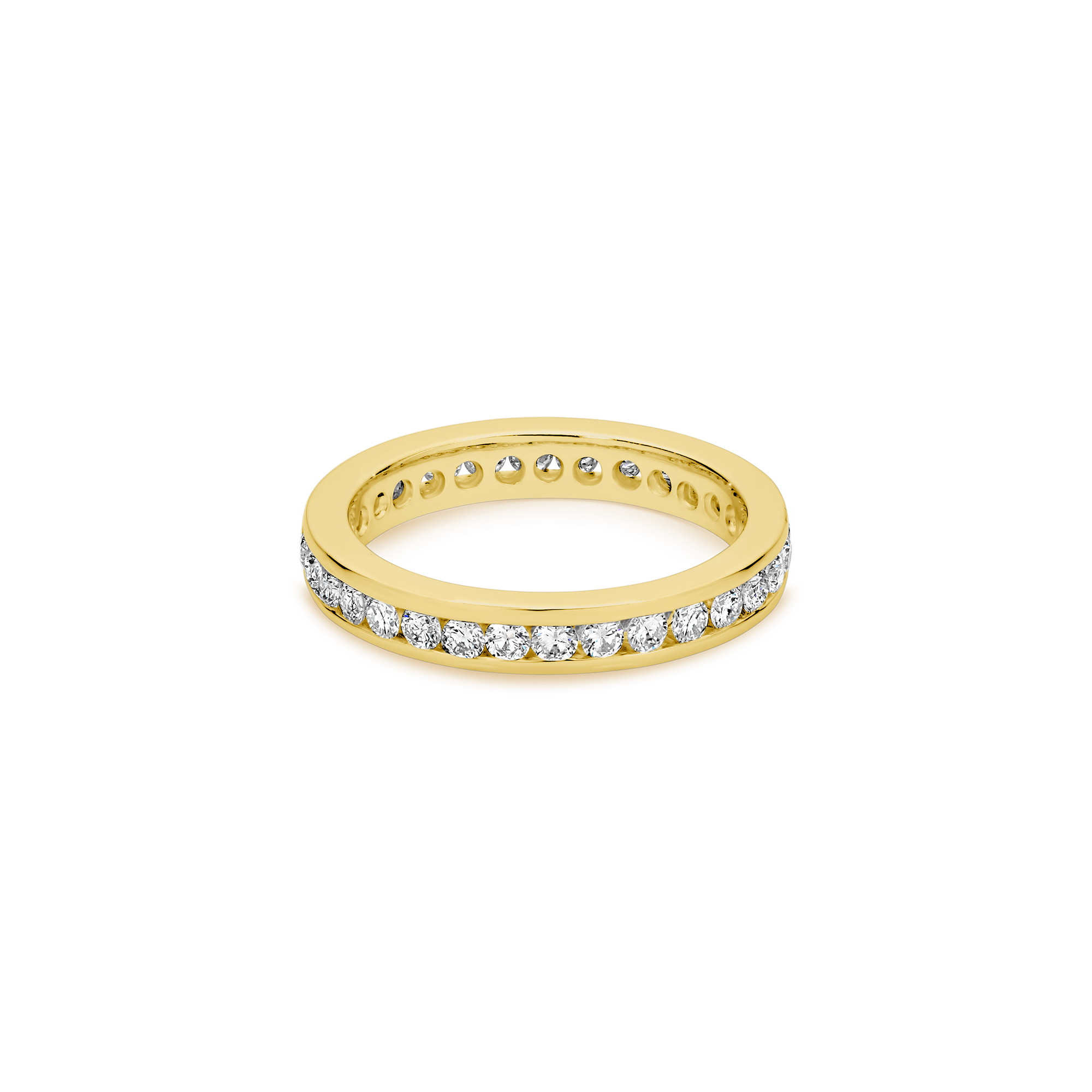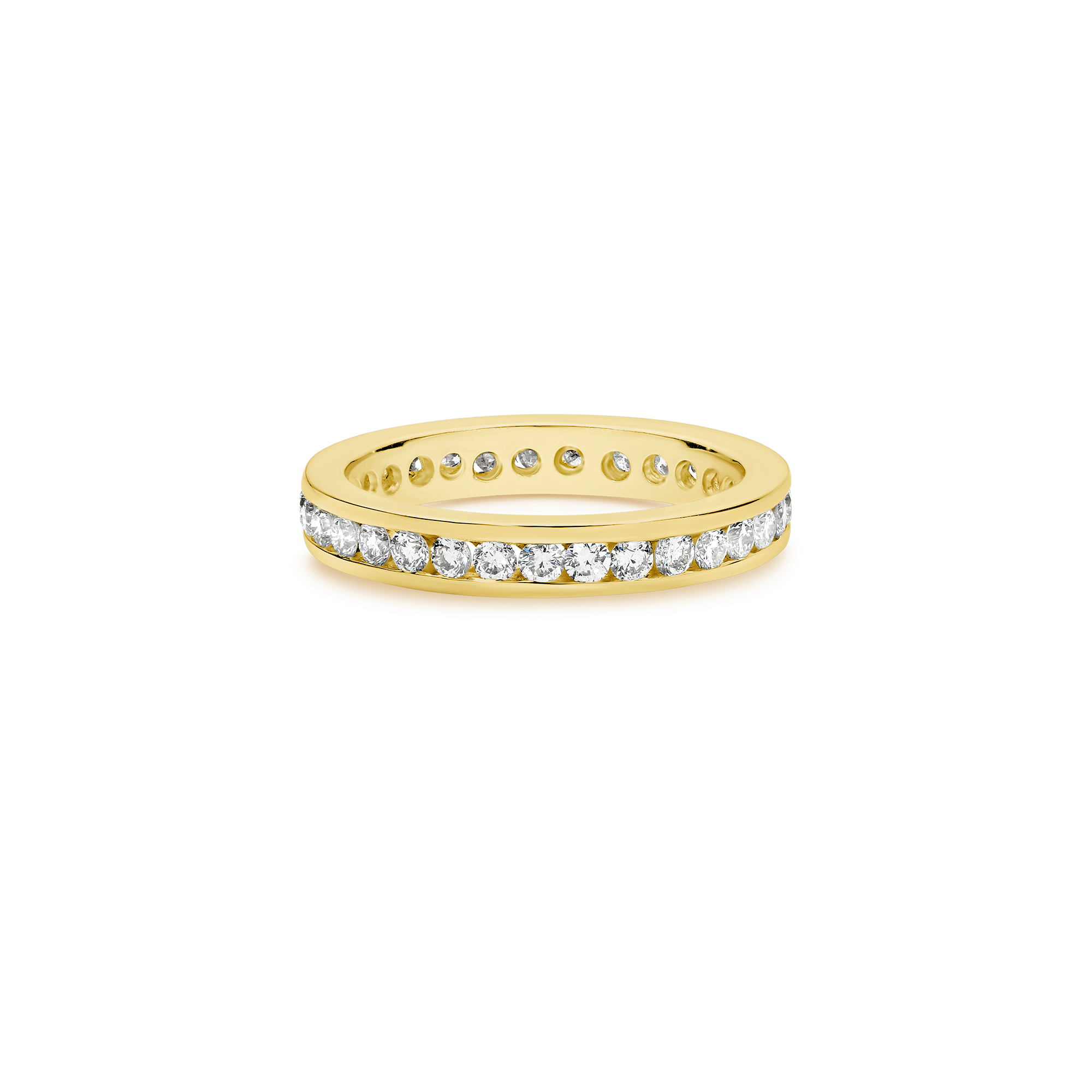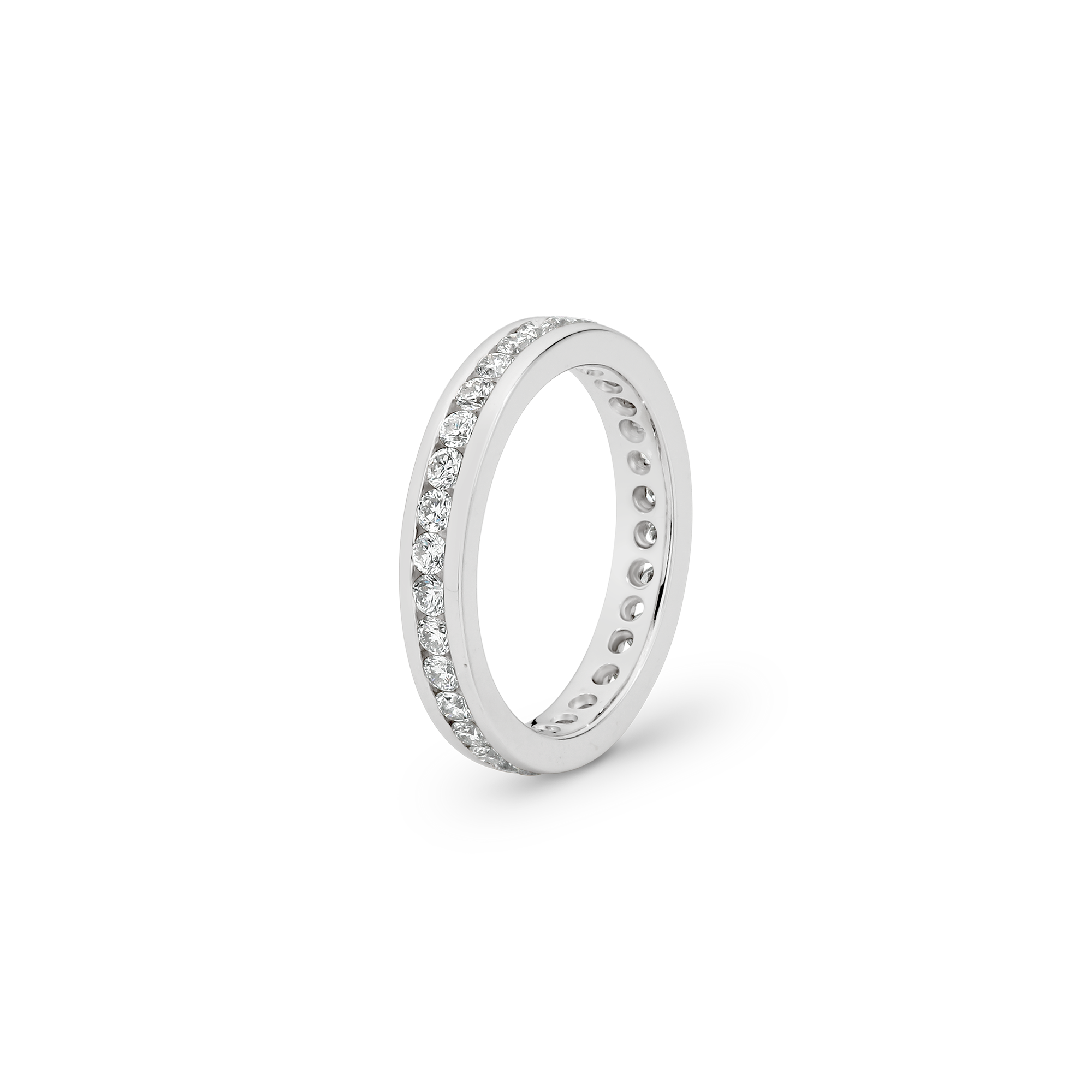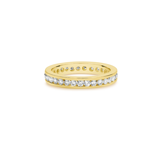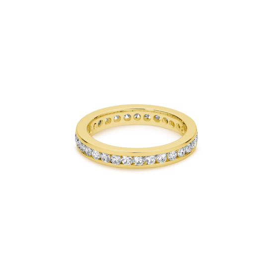 A beauty to behold and a joy to wear. Celebrate eternal love with an uninterrupted row of channel-set brilliant round cut diamonds. An absolute classic!