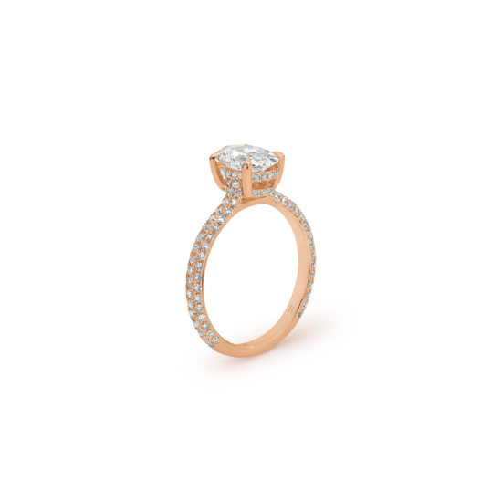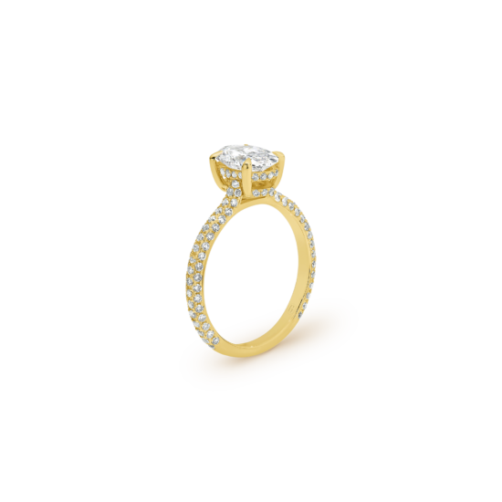 Oval cut diamonds really stand out and make your fingers appear longer – they are also hailed for maximizing the illusion of size, so you can get much more carat for your buck out of an oval cut! Enter our beautifully designed Sammy engagement ring, featuring an oval cut centre stone atop a micro-pavé diamond band. A truly swoon-worthy ring you will love wearing every day.