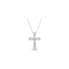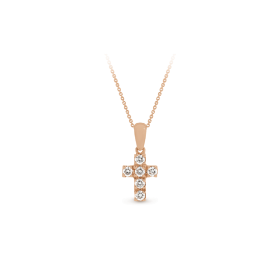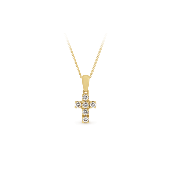 0.20 carats of diamonds adorn this petite cross pendant. The simple lines and claw setting deliver minimalist appeal, while the brilliant round cut diamonds deliver divine dazzle that really draws the eye!
